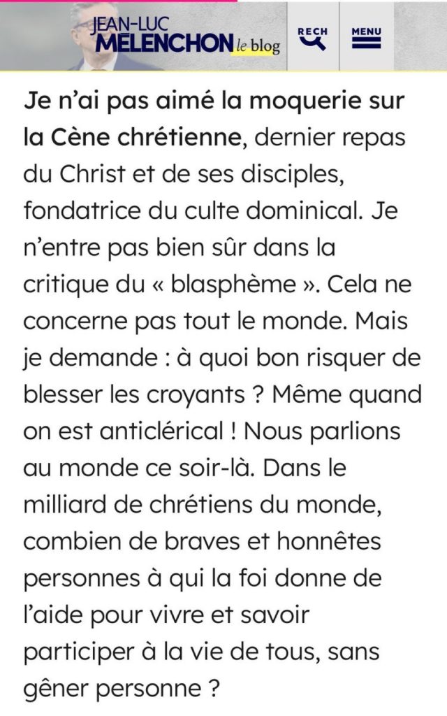 Je tiens à féliciter votre rédaction pour la (malheureusement ) seule réaction à la mesure de la gravité des faits, dans les milieux catholiques, concernant la cérémonie d’ouverture des jeux olympiques de Paris.