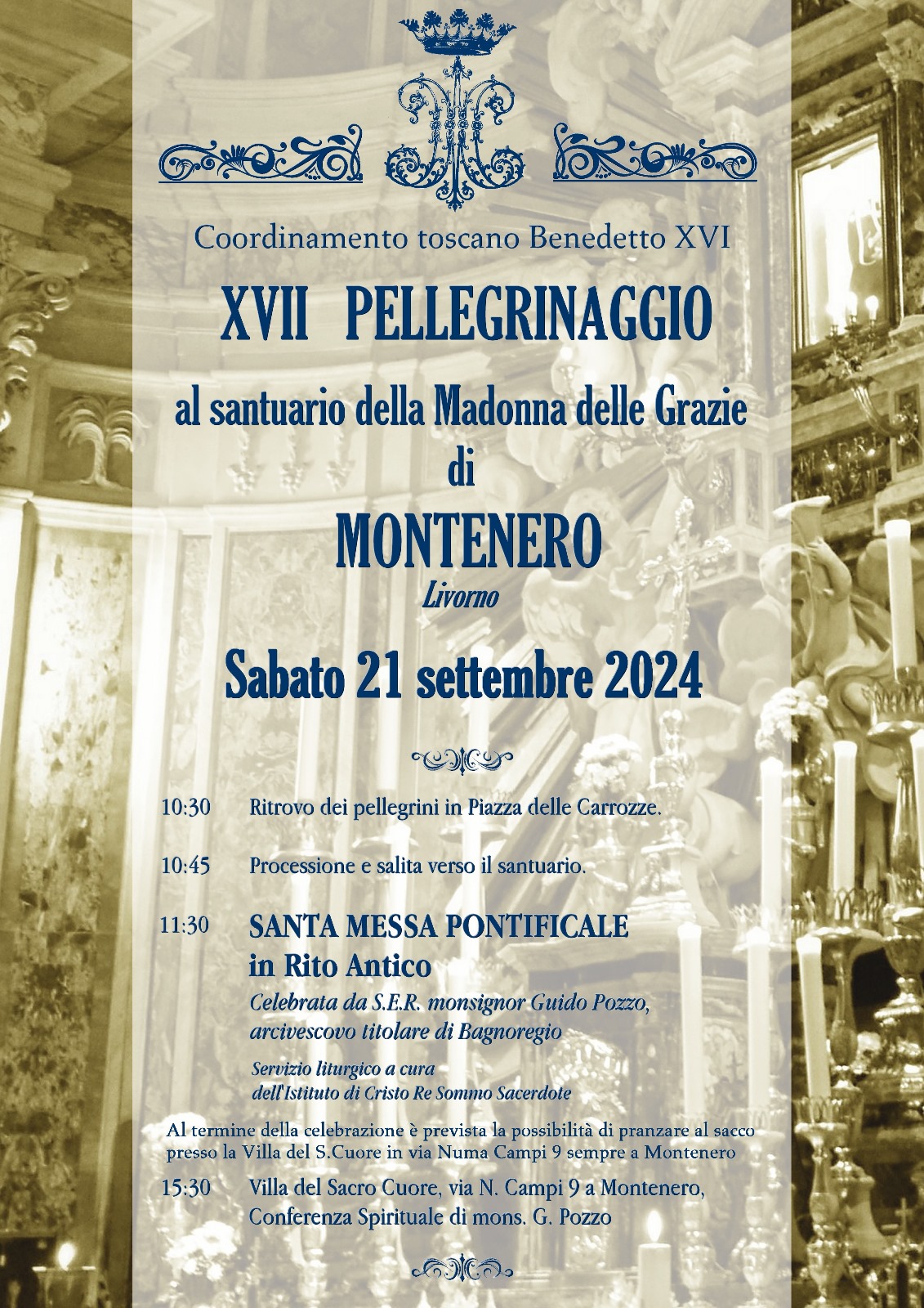 XVIIe pèlerinage régional des catholiques attachés à l’antique tradition liturgique de l’Église le samedi 21 septembre 2024 au Sanctuaire de la Madonna delle Grazie de Montenero (Livourne), patronne de la Toscane.