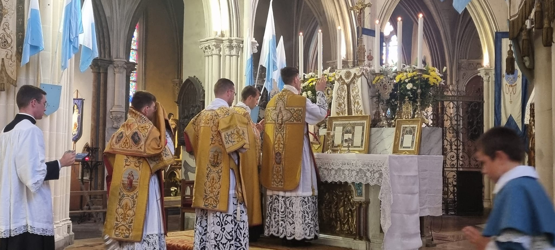 Les 12 et 13 août, la Basilique Notre-Dame d’Espérance de Saint-Brieuc a accueilli ses derniers jours deux premières solennelles de deux jeunes chanoines de l’Institut du Christ Roi ordonnés prêtres en juillet dernier.