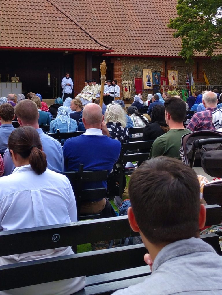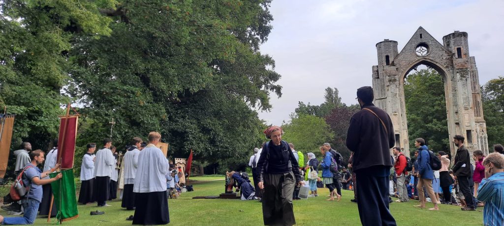 Le pèlerinage s’est terminé devant les ruines du prieuré de Walsingham, qui avait été détruit en 1538. Au Moyen Âge, Walsingham était un lieu de pèlerinage et le prieuré des chanoines augustins abritait même une maison de la Sainte Famille. Après plusieurs prières, les pèlerins se sont inclinés devant Notre-Dame de Walsingham qui était portée depuis ce matin. Ils sont ensuite repartis aux environs de 17h30, certains restant cependant à Walsingham pour une messe célébrée ce lundi matin à la Slipper Chapel.