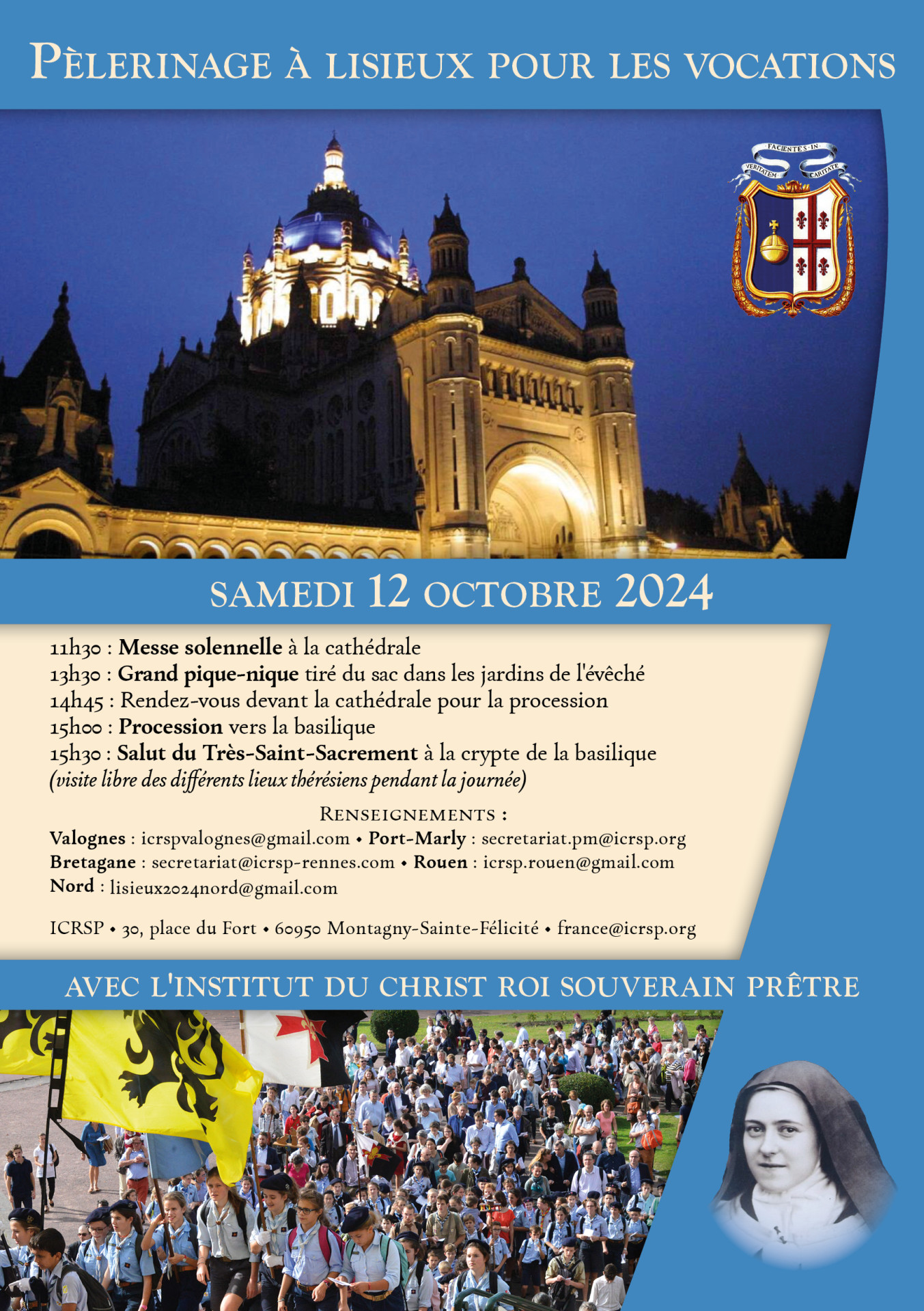 L’Institut du Christ Roi organise son Pèlerinage pour les vocations à Lisieux le samedi 12 octobre :