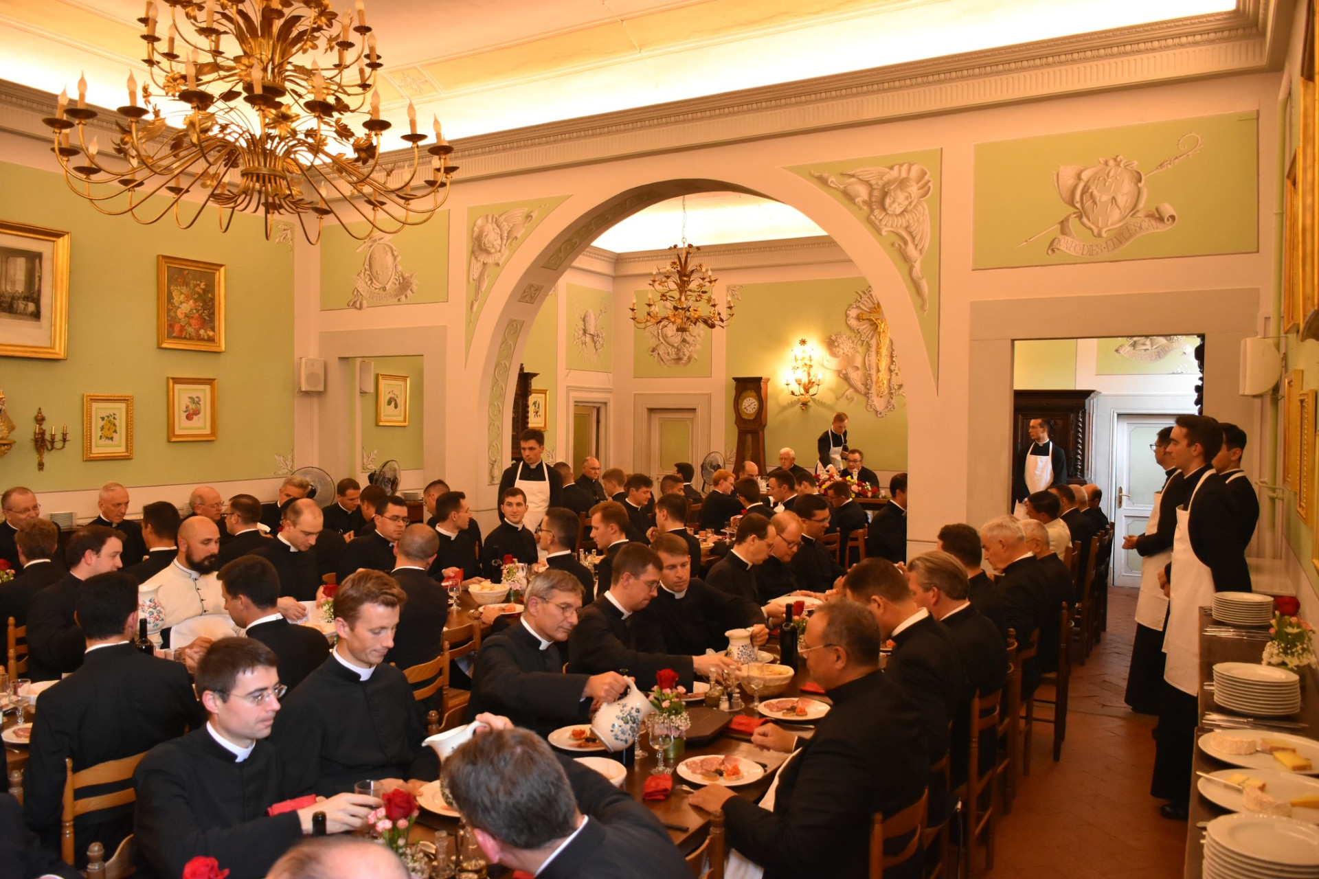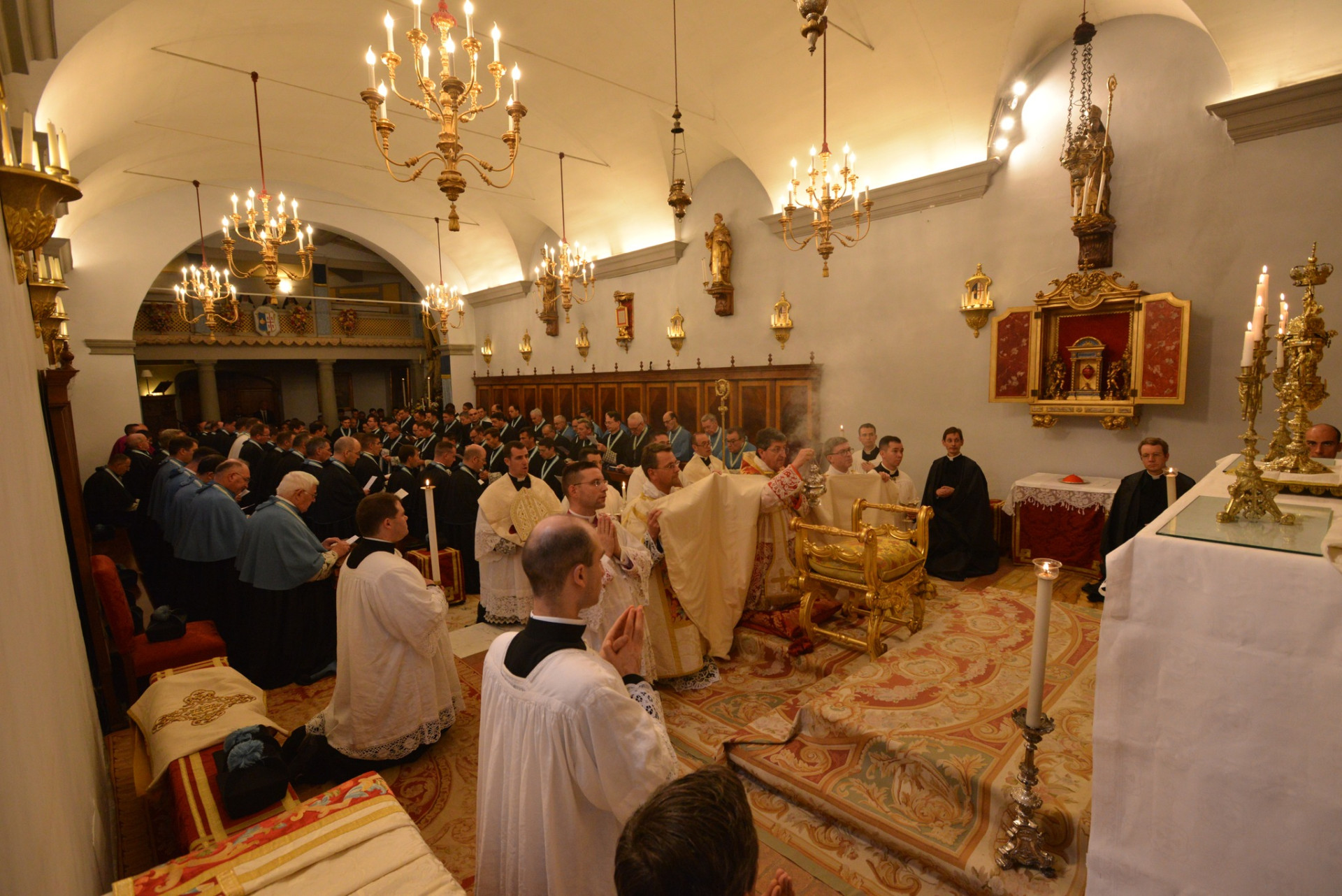 Ces journées furent aussi marquées par la grâce de recevoir S.E.R. le cardinal Betori, alors qu’il vient de se retirer, après 16 ans comme archevêque de Florence. Son Éminence a chanté le Te Deum solennel d’action de grâces et donné le salut du Saint-Sacrement, avant de participer au grand dîner de clôture du chapitre. Nous avons été très touchés des belles paroles que Son Éminence a eu la bonté de nous adresser à cette occasion, remerciant et félicitant les chanoines pour leur bon travail dans son archidiocèse.