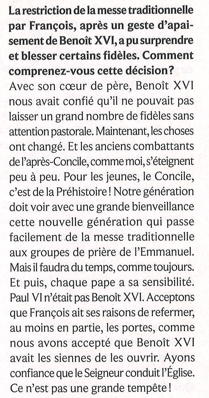 Dans ce numéro, le parole est donnée au cardinal Christoph Schönborn, archevêque de Vienne (Autriche). Il évoque la situation de l’église aujourd’hui et la messe traditionnelle :