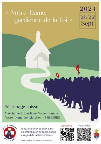 Cette année, la première édition de ce pèlerinage suisse sera sur le thème de “ Notre-Dame, gardienne de la Foi ”. L’occasion pour nous de méditer sur l’importance de la foi pour le salut et de confier à la Vierge le renouvellement de la foi dans notre pays.