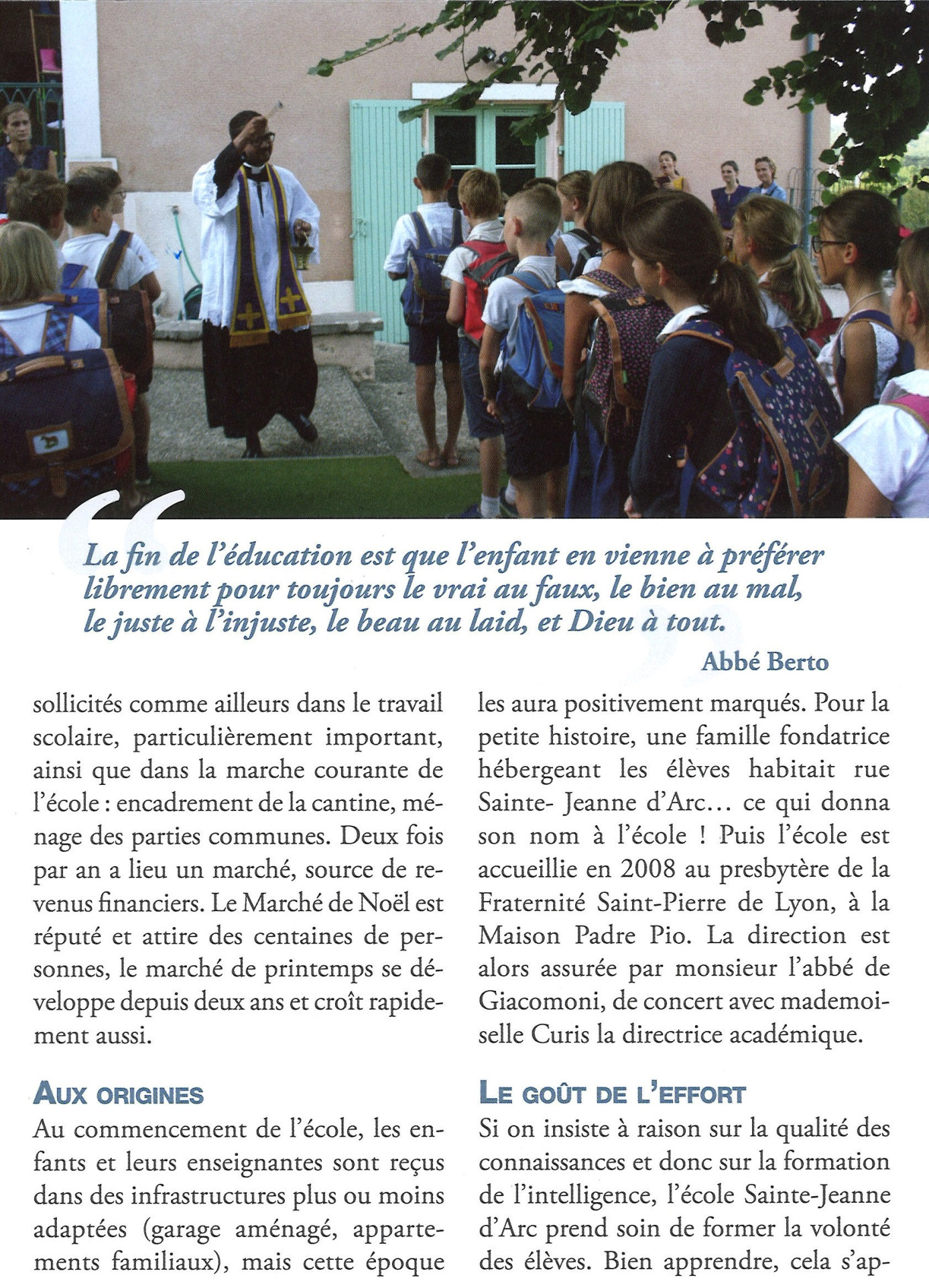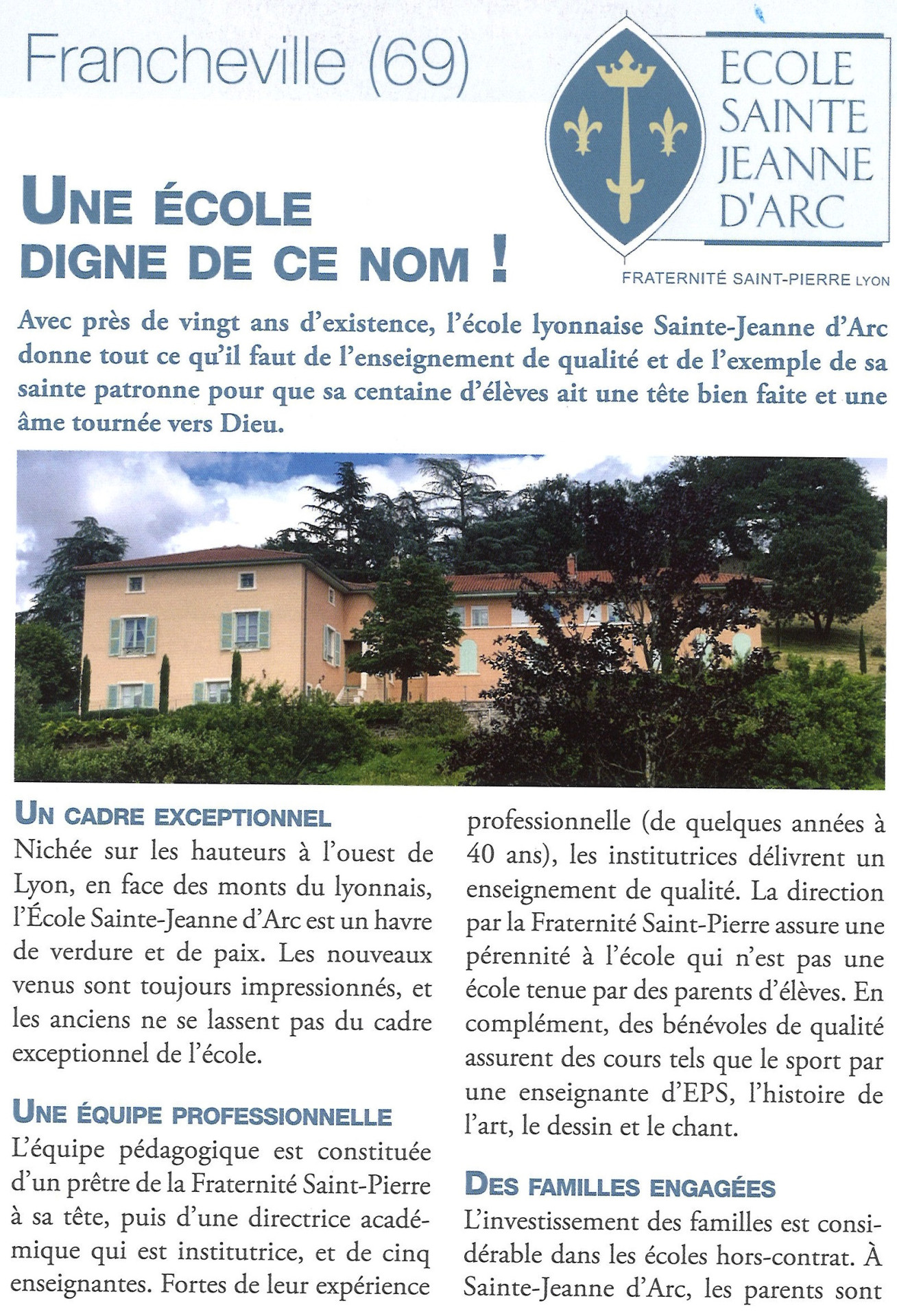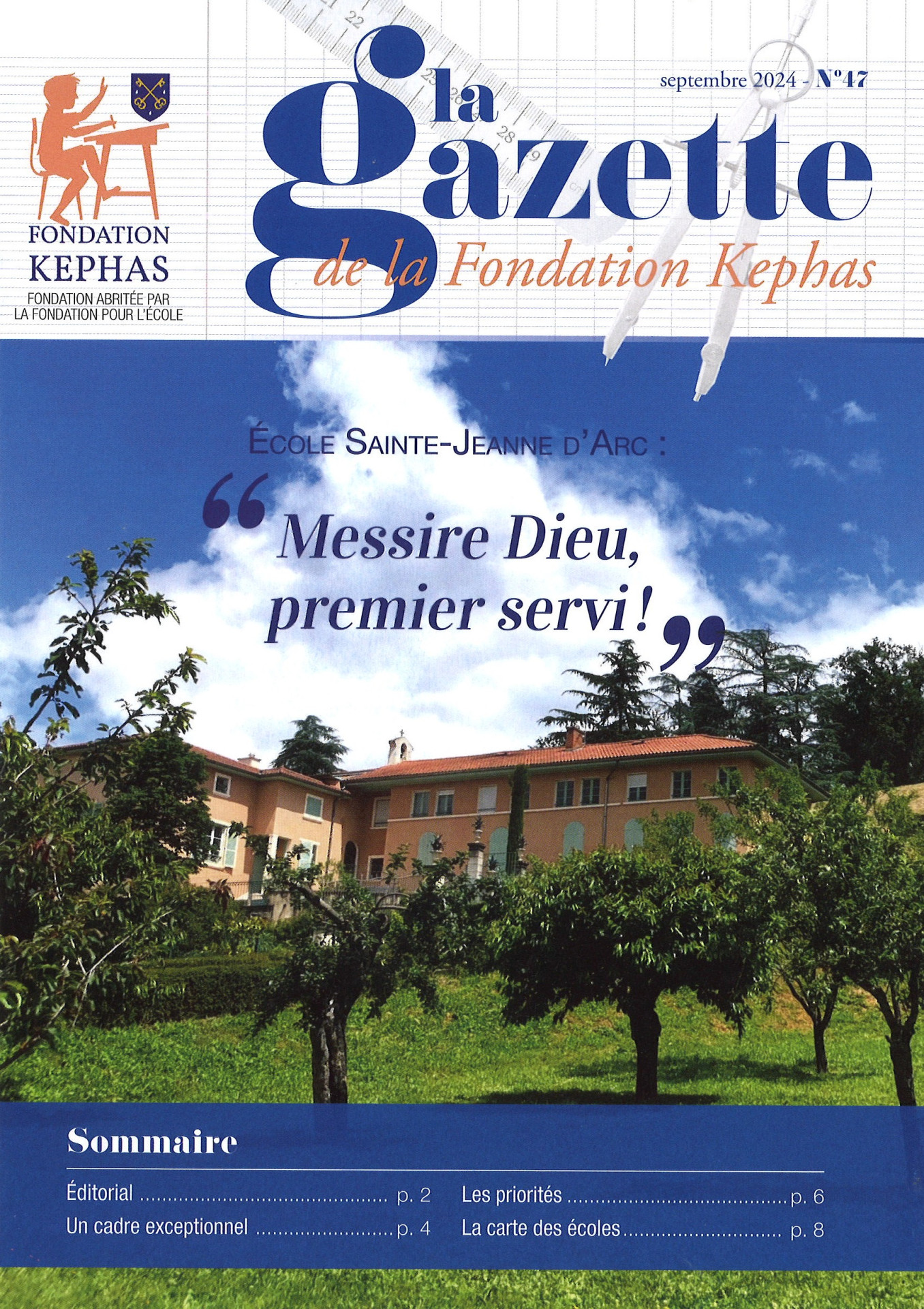 Dans ce numéro de rentrée (n°47, Septembre 2024), la Gazette de la Fondation Kephas présente l’Ecole Sainte Jeanne d’Arc, école maternelle et primaire située à Francheville (Lyon) fondée en 2008 dont la Fraternité Saint-Pierre assure la direction et l’aumônerie.