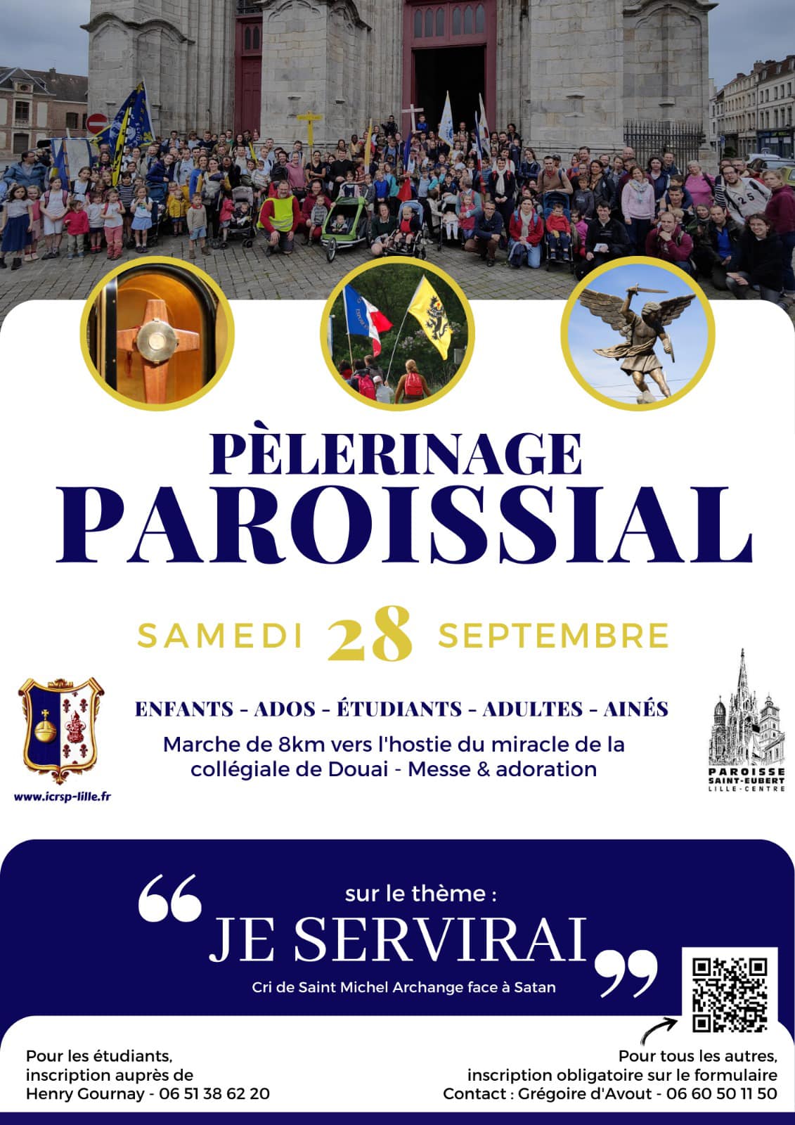 Accueil » Nos archives » Pèlerinage de rentrée (ICRSP) vers la Collégiale de Douai le 28 septembre Summorum Pontificum Pèlerinage de rentrée (ICRSP) vers la Collégiale de Douai le 28 septembre Un lecteur nous indique que la communauté traditionnelle de l’église Saint-Etienne à Lille (ICRSP) organise un pèlerinage vers la Collégiale de Douai le samedi 28 septembre : ICRSP Lille (Facebook) Article précédentPoitiers : Mgr Wintzer part à Sens-Auxerre et son diocèse lui survit Article suivantVoir Dieu ? 19 septembre 2024