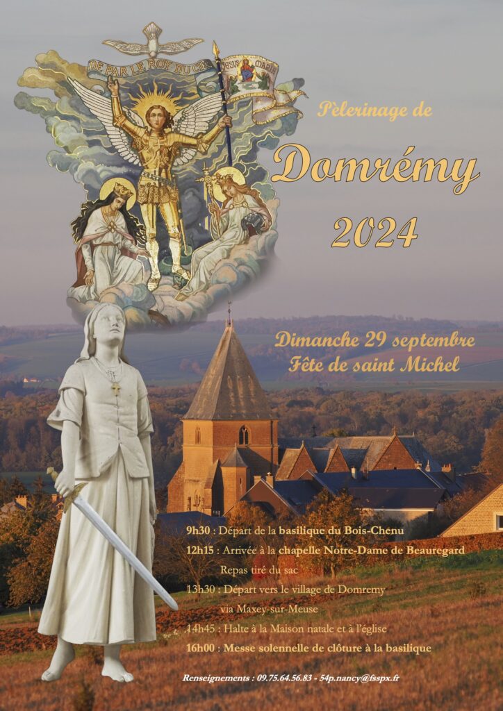 Le Pèlerinage en l’honneur de Sainte Jeanne d’Arc organisé par le prieuré de la Fraternité Saint-Pie X à Nancy aura lieu le dimanche 29 septembre 2024 :