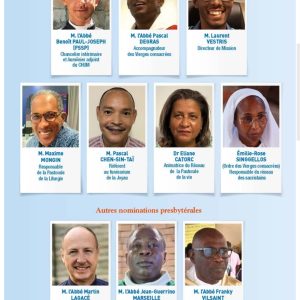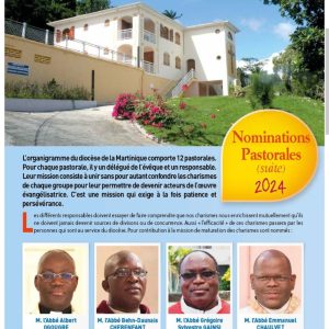 Accueil » Nos archives » Nouvelles nominations en Martinique En Une Nouvelles nominations en Martinique De nouvelles nominations sont parues en Martinique – on y retrouve notamment l’ancien supérieur en France de la FSSP, nommé chancelier honoraire et aumônier du CHU. Article précédentVisite apostolique pour la Fraternité Sacerdotale Saint-Pierre Article suivantMgr Brunin et les intégristes 28 septembre 2024