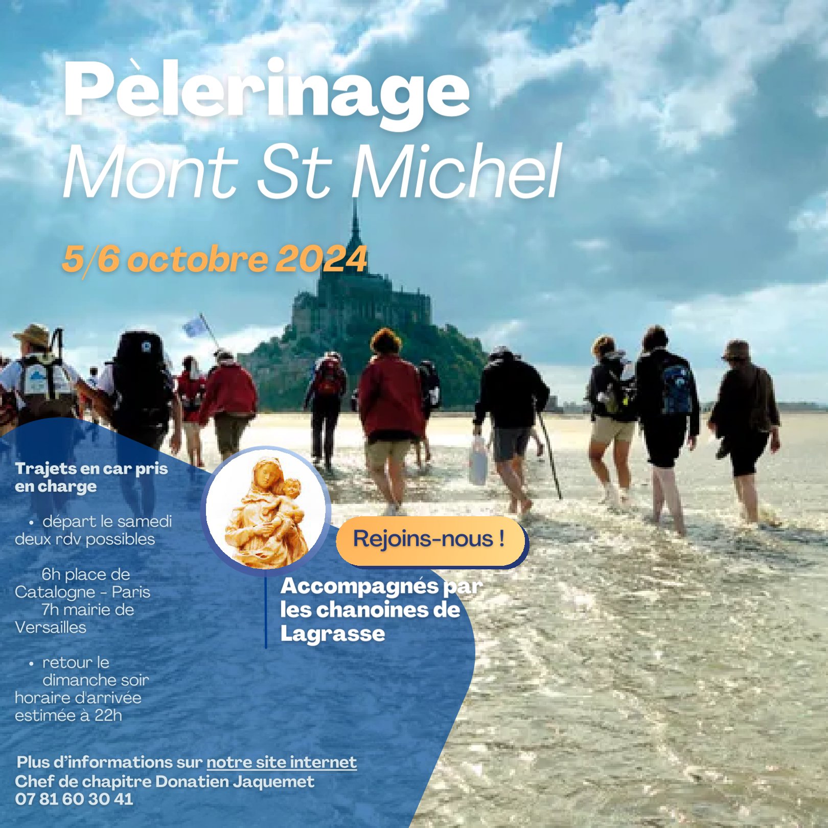 Le pèlerinage de rentrée du Chapitre Saint Martin (pour les 18 à 25 ans) aura lieu les 5 et 6 octobre au Mont St Michel. L’aumônerie est assurée par les chanoines réguliers de la Mère de Dieu (Lagrasse).
