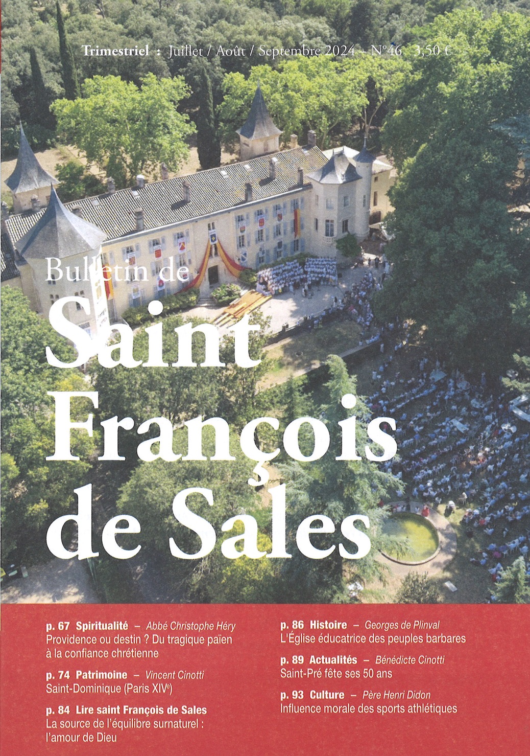 Au sommaire ‘Providence ou destin ? de l’abbé Christophe Héry, ‘La source de l’équilibre surnaturel : l’amour de Dieu’ de Saint François de Sales ou encore ‘Saint-Pré fête ses 50 ans’ de Bénédicte Cinotti (extrait ci-dessous)
