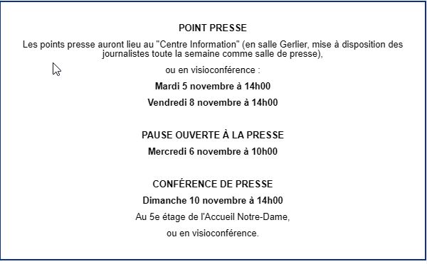 A ceux qui seront bien souples et serviles – et aux médias régionaux et religieux présents pourront, en outre, être concédés 5 ou 10 minutes d’interview avec tel ou autre évêque, à condition de négocier au préalable, d’annoncer ses questions, d’être surveillé comme le lait sur le feu par un collaborateur ou communicant – qui interviendra bien vite si l’évêque se laisse aller, et de se laisser relire ou visionner. Autant lire l’interview des mêmes dans leurs bulletins diocésains respectifs…