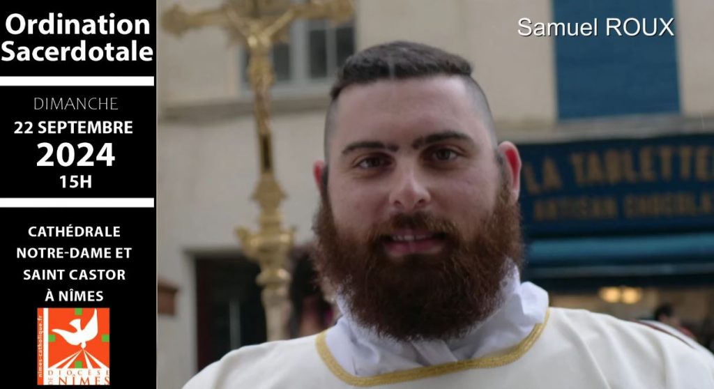 Le 22 septembre dernier, Samuel Roux, qui était le seul séminariste du diocèse de Nîmes en 2023-24, a été ordonné prêtre par Mgr Brouwet, dans une cathédrale Saint-Castor pleine – 600 fidèles et 71 prêtres. Il avait été ordonné diacre en février dernier. Il a été nommé à Villeneuve-les-Avignon, qui comme son nom ne l’indique pas, se trouve… à l’extrémité est du diocèse du Gard, en face d’Avignon, sur la route et la voie ferrée qui mènent à Bagnols-sur-Cèze, Pont-Saint-Esprit et à l’Ardèche.