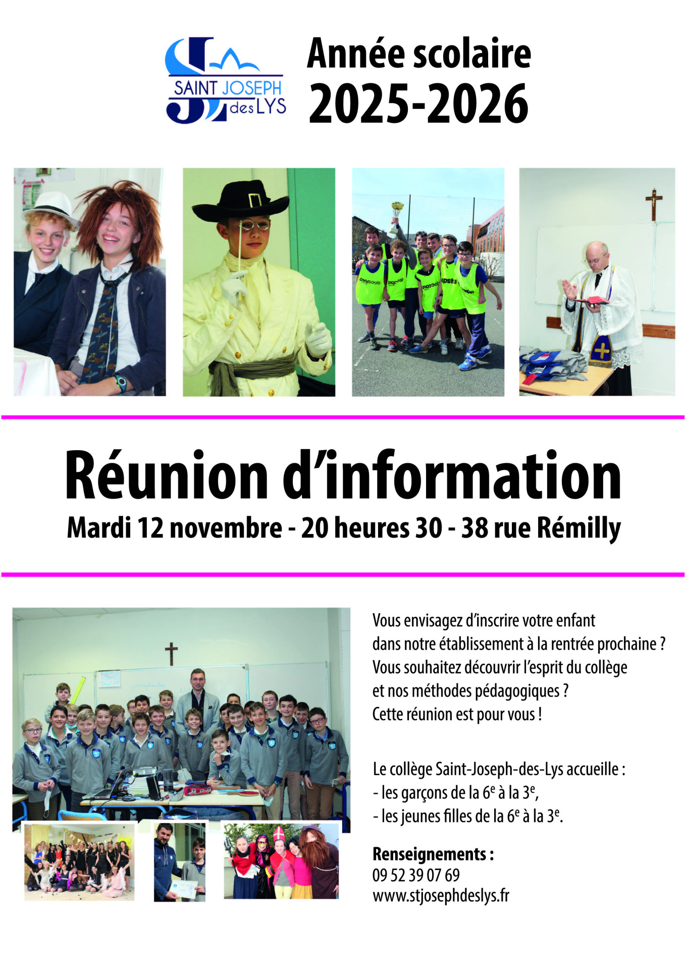Une réunion de présentation et d’information du Collège aura lieu le mardi 12 novembre à 20h30 (au 38 rue Rémilly – Versailles).