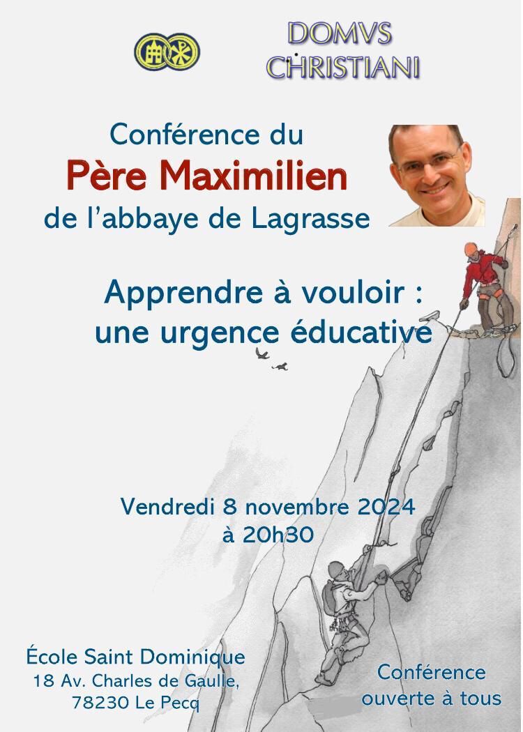 Les équipes Domus Christiani de Port-Marly et Saint-Germain-en-Laye organisent une conférence du Père Maximilien, chanoine de Lagrasse, sur l’urgence éducative ce vendredi 8 novembre au Pecq :