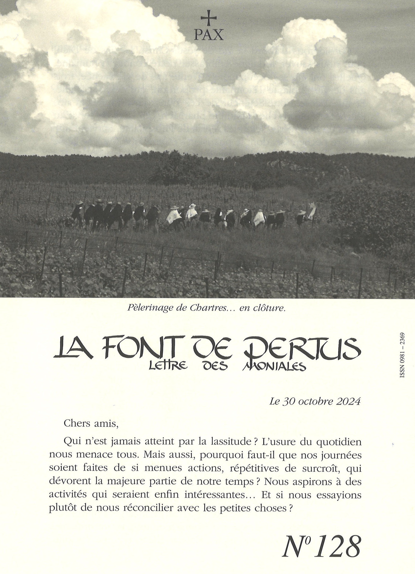 Dans la dernière lettre des Moniales du Barroux, La Font de Pertus (n°128, 30 octobre 2024), Mère Placide, abbesse, évoque ces petites choses que nous devons faire pour faire la volonté de Dieu :