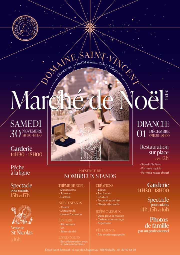 Son Marché de Noël a lieu le samedi 30 novembre et dimanche 1er décembre au Domaine Saint Vincent (Grand’Maison) à Villepreux.