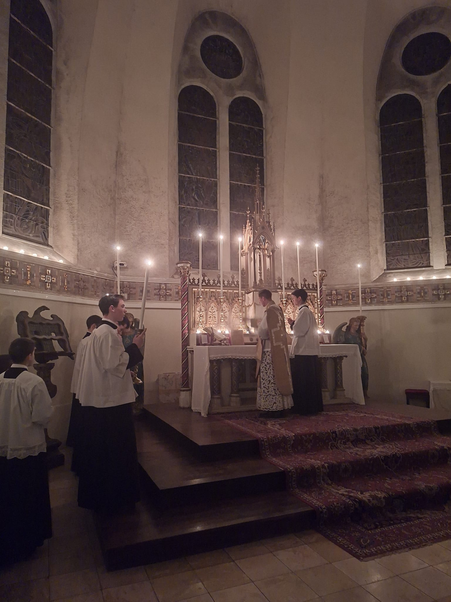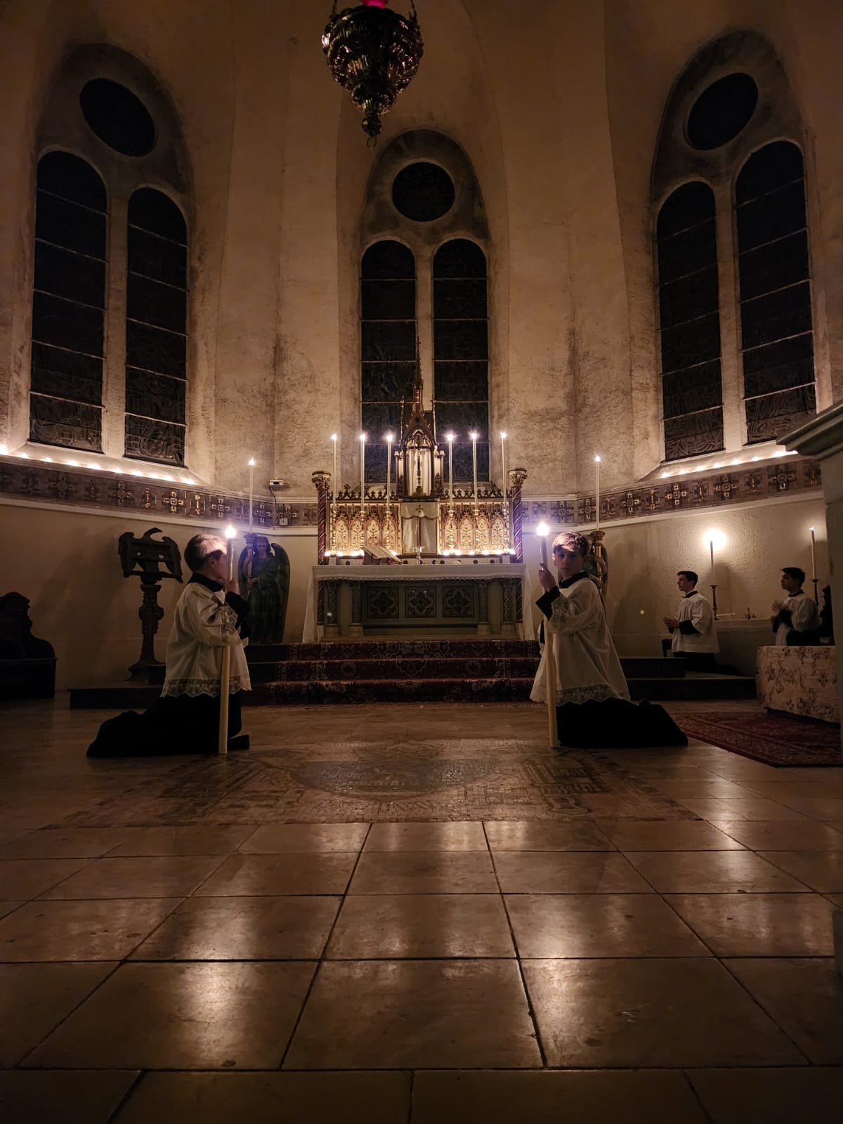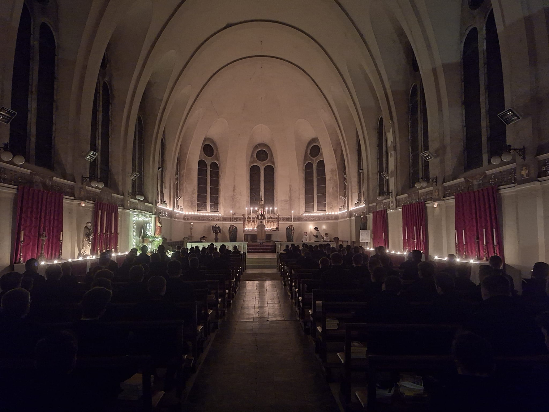 Ce matin, puisque nous sommes dans le temps liturgique de l’avent, messe de « Rorate » avec éclairage uniquement à la bougie.