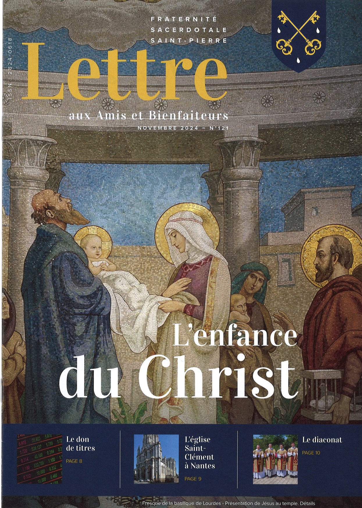 La dernière Lettre aux Amis et Bienfaiteurs de la Fraternité Saint-Pierre (Novembre 2024, n°121) revient sur les dernières activités apostoliques de ses prêtres en France, sur la fête de Saint-Nicolas (fêtée le 6 décembre), sur son apostolat exercé dans le diocèse de Nantes (à l’église Saint-Clément, Nantes), sur le diaconat, mais aussi un article d’actualité dans cette période de l’Avent sur l’Enfance du Christ (cf ci-dessous).