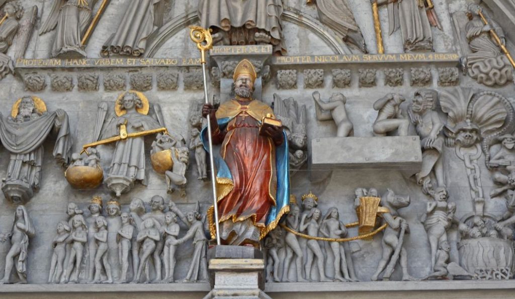 La statue en bois orne depuis 1767 le portail ouest de la cathédrale Saint-Nicolas, propriété du canton de Fribourg. Depuis 1924, cette dernière est le siège de l’évêque de Lausanne, Genève et Fribourg, Mrg Charles Morerod« .
