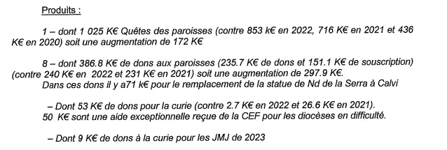 - en 2023 la Curie a reçu une aide exceptionnelle de 50.000 euros de la CEF pour les diocèses en difficulté