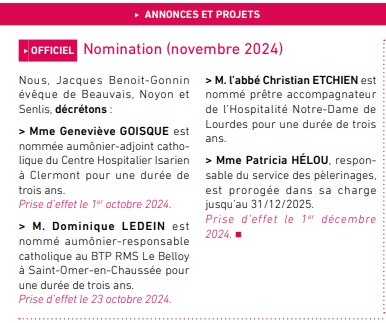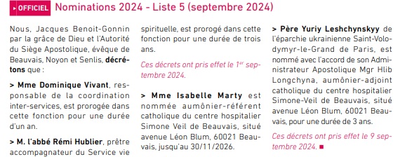 Voici les nominations dans le diocèse de Beauvais, dans l’Oise, cet automne :