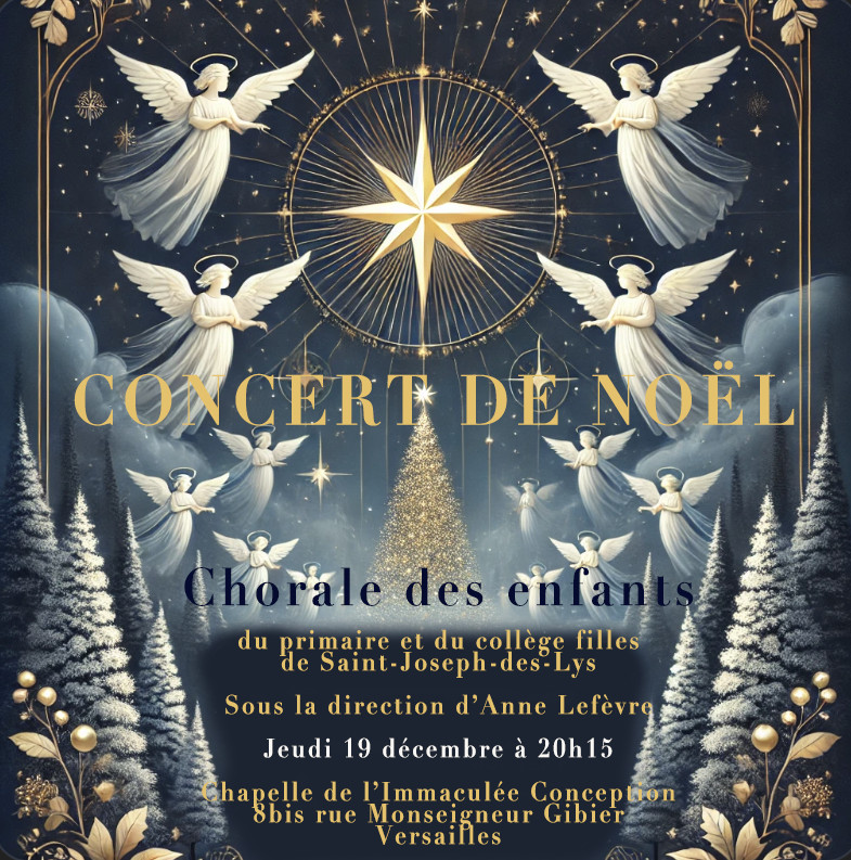 L’Ecole vous invite au Concert de Noël des chorales de l’Ecole et du Collège le jeudi 19 décembre à la Chapelle de l’Immaculée Conception à Versailles.