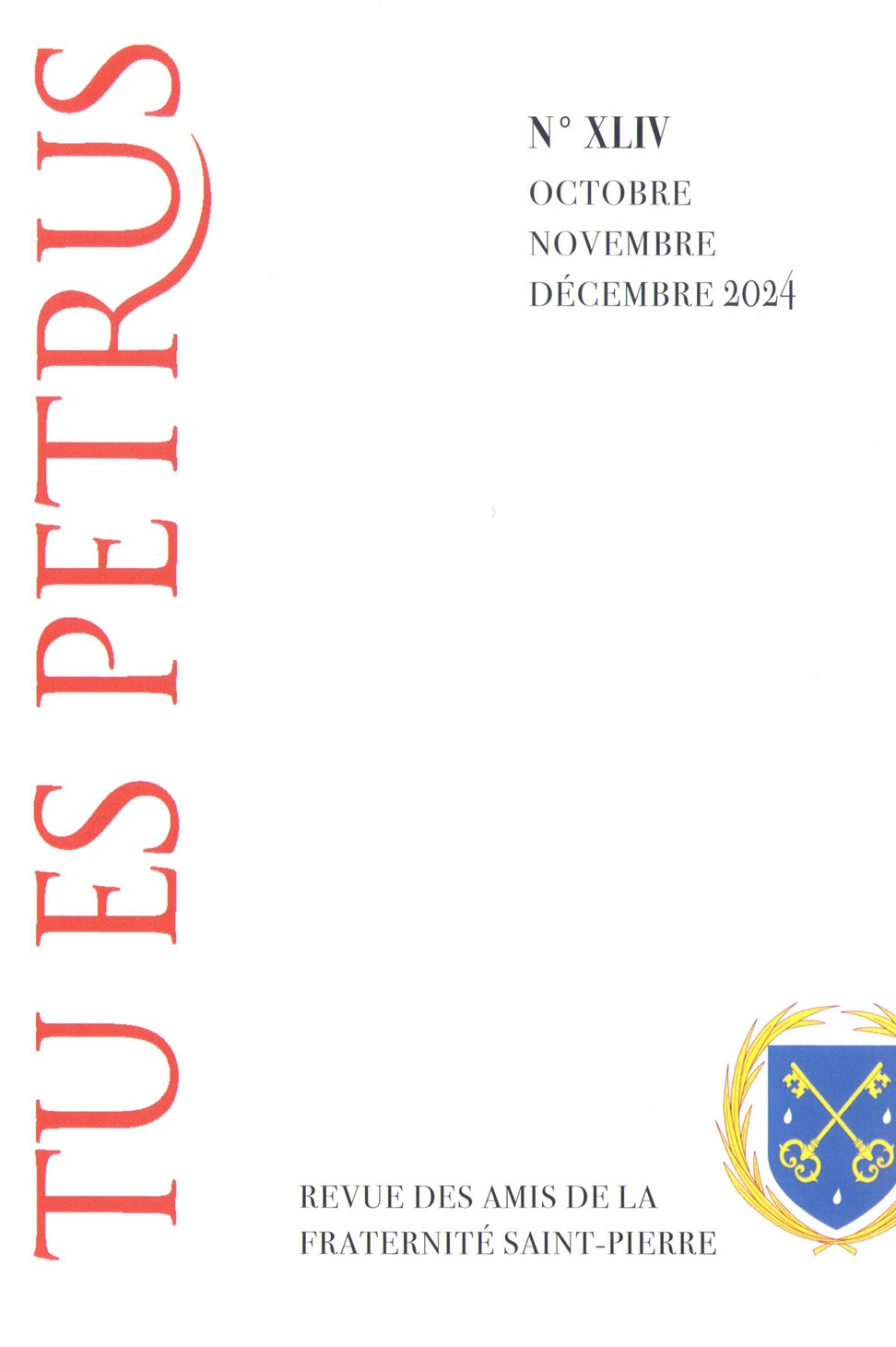 Le dernier numéro de Tu Es Petrus (Octobre-Novembre-Décembre 2024, n°44) est paru il y a quelques semaines :