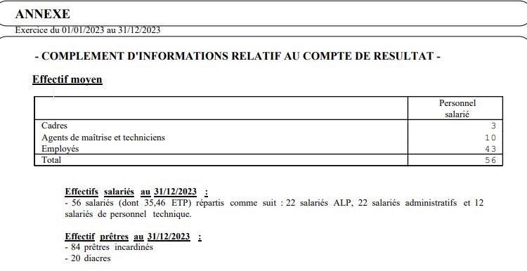 On constate aussi l’existence de 56 salariés – soit 35, 46 équivalents temps plein, ce qui semble beaucoup pour un tel diocèse, peuplé de 227 000 habitants. Celui de Montauban, qui recouvre le territoire du Tarn-et-Garonne et ses 264 000 habitants, ne compte qu’un cadre et huit employés en 2023.