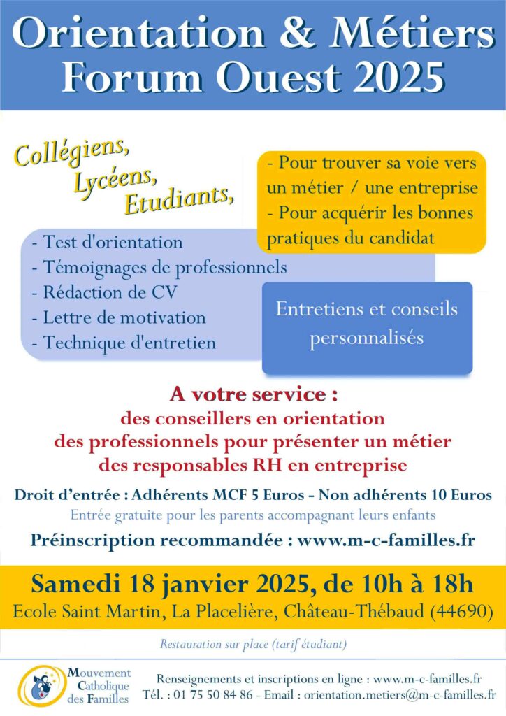 Orientation et Métiers Forum Ouest le 18 janvier 2025 à Nantes :
