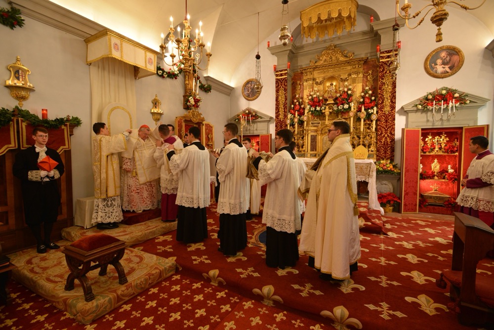 Cette année encore, nous avons eu la grande grâce de célébrer Noël à Gricigliano honorés de la présence de S.E.R. le cardinal Burke. Après la Messe Pontificale du Jour, les Vêpres Pontificales et le Salut du Saint-Sacrement, la communauté s’est réjouie de la Naissance du Sauveur pendant la veillée familiale : concert, spectacles, chant du traditionnel Minuit Chrétien se sont succédé en cette belle soirée. C’était aussi l’occasion de remercier les Supérieurs pour leur bonté et leurs travaux infatigables.