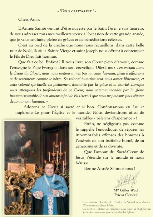 L’Institut du Christ Roi a publié son calendrier 2025 dont l’éditorial est signé par Mgr Wach :