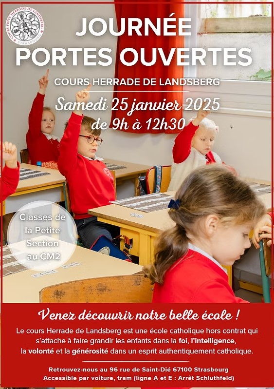 Le cours Herrade de Landsberg (Strasbourg) organise des portes ouvertes le samedi 25 janvier de 9h à 12h30.