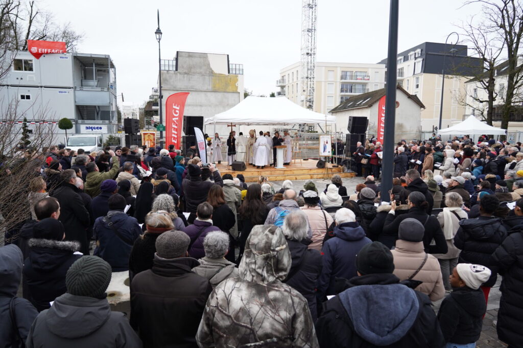 Le dimanche 26 janvier, Monseigneur Jean-Yves Nahmias, évêque de Meaux, accompagné du Nonce apostolique Celestino Migliore, a béni trois pierres provenant de l’ancienne abbaye royale. Ces pierres seront intégrées à la nouvelle église en hommage à l’histoire chrétienne de Sainte Bathilde et à la vocation missionnaire du lieu. Ainsi, la paroisse et la ville honorent leur passé tout en construisant un avenir missionnaire, catholique et ouvert à tous, au cœur de la ville.