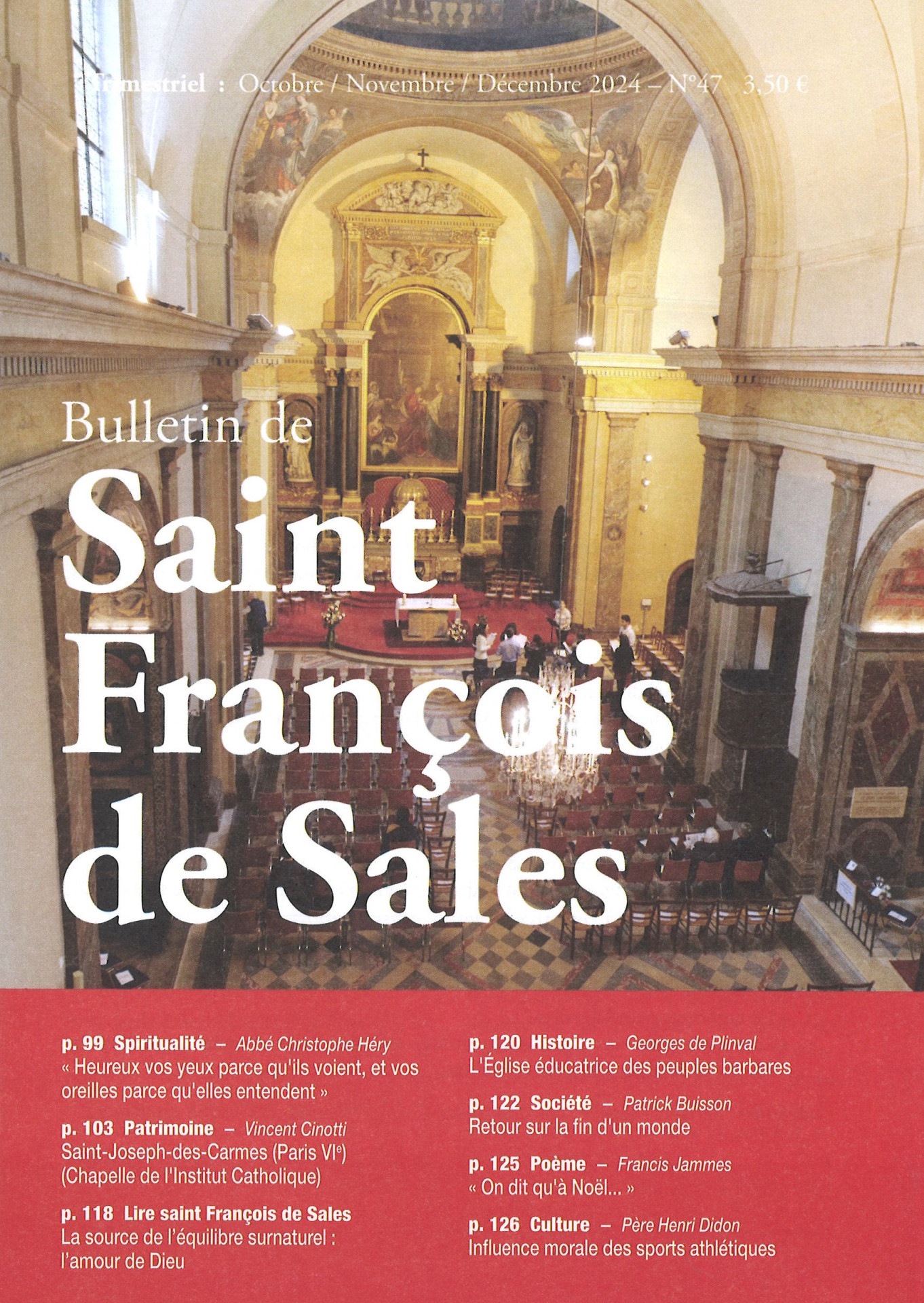 Le dernier Bulletin de Saint François de Sales, bulletin de l’Oeuvre de Saint François de Sales, est paru en fin d’année (n°47, Octobre / Novembre / Décembre 2024).