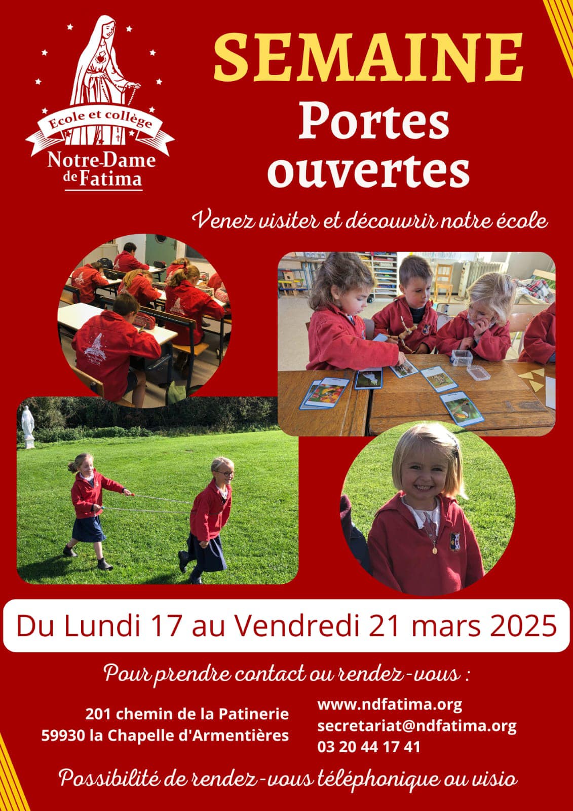 L’Ecole et le Collège Notre-Dame de Fatima propose une semaine portes ouvertes au mois de mars :