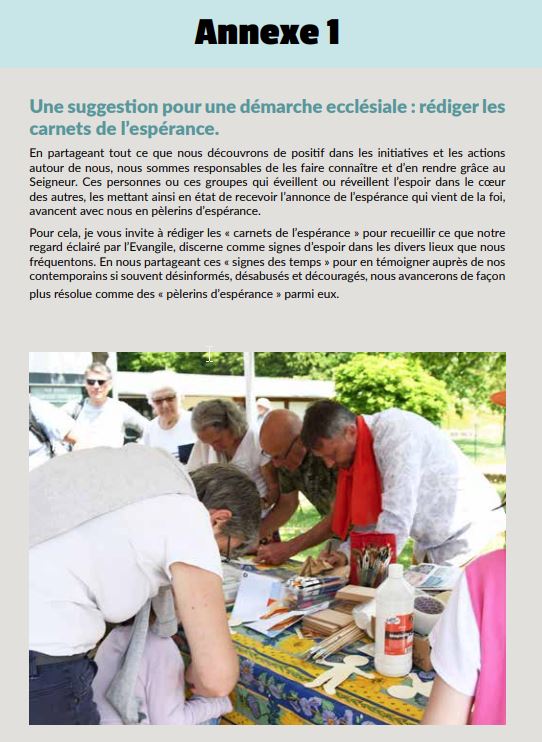 Dans les annexes, une idée originale qui n’est pas sans rappeler les cahiers de doléance de la Révolution. Mgr Brunin aura donc ses carnets d’espérance… qui risquent d’aller encombrer le fatras des archives sans même être lus, surtout s’ils demandent d’être attentifs à des groupes – ou des fidèles – en détresse et auxquels le Pape François aurait oublié de penser dans sa bulle d’indiction.