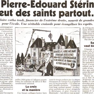 Lu dans le Canard enchaîné qui doit paraître ce mercredi: dans un article, on apprend que l’homme d‘affaires Pierre-Édouard Stérin « veut des saints partout ».