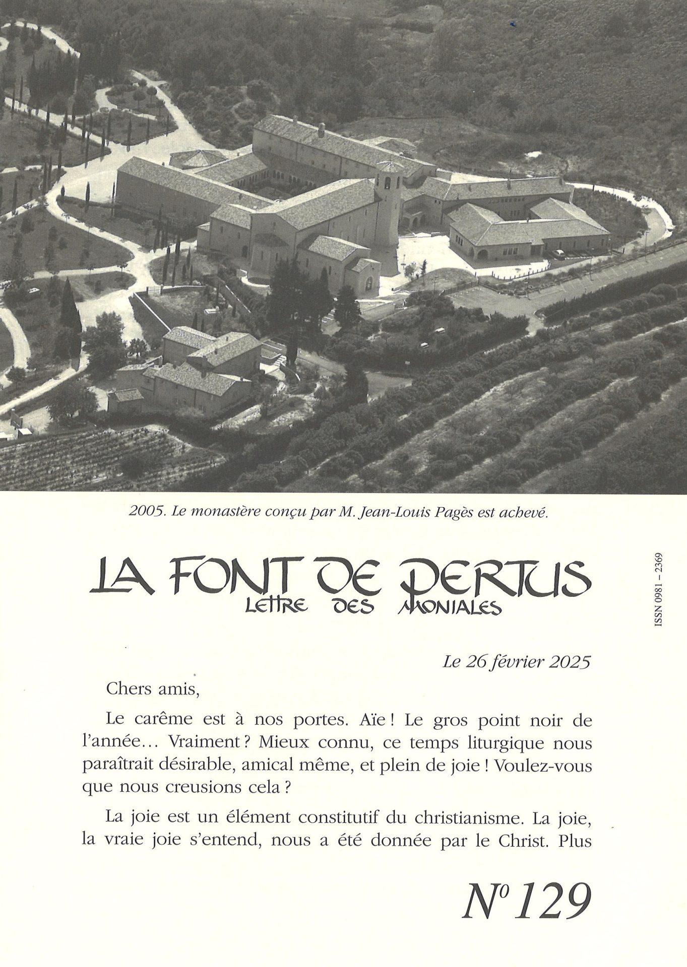 Dans la dernière lettre des Moniales du Barroux, La Font de Pertus (n°126, 26 février 2025), Mère Placide, abbesse, nous invite à être dans la joie pendant ce temps de Carême :