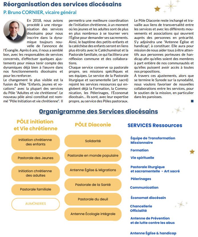 - Le P. Bernard TORDI est nommé prêtre accompagnateur du Service d’accompagnement ecclésial et social des prêtres.