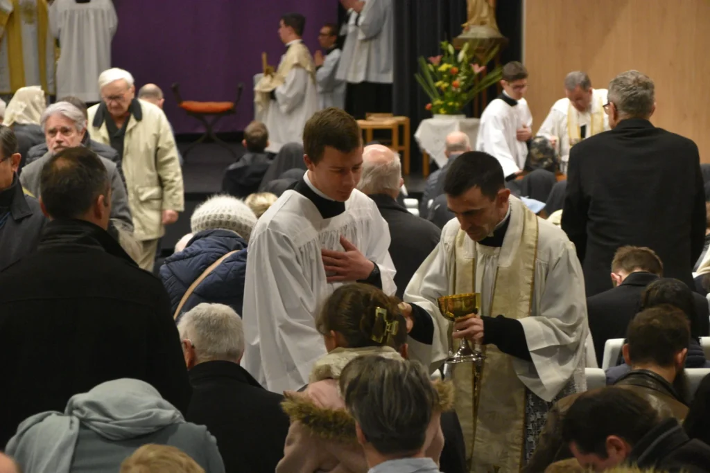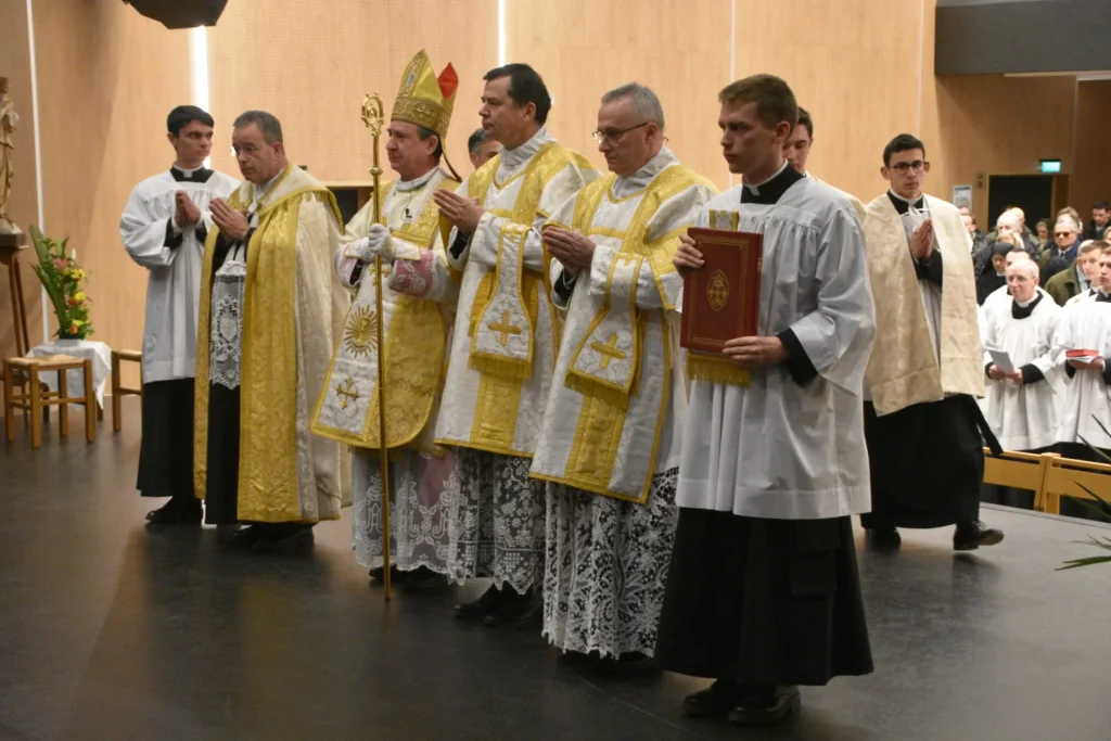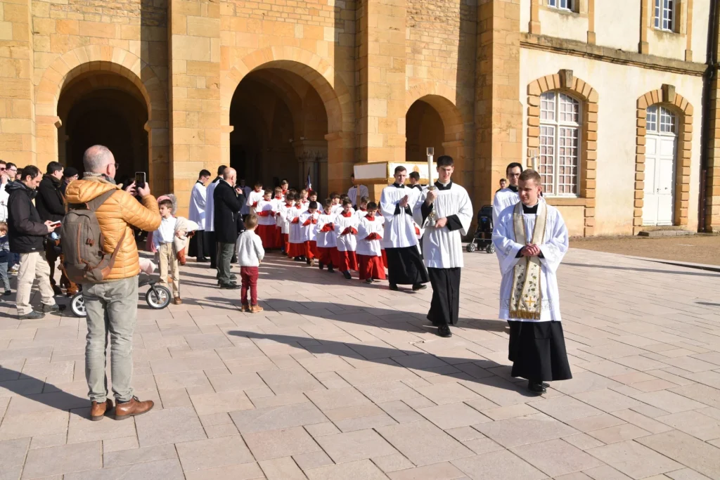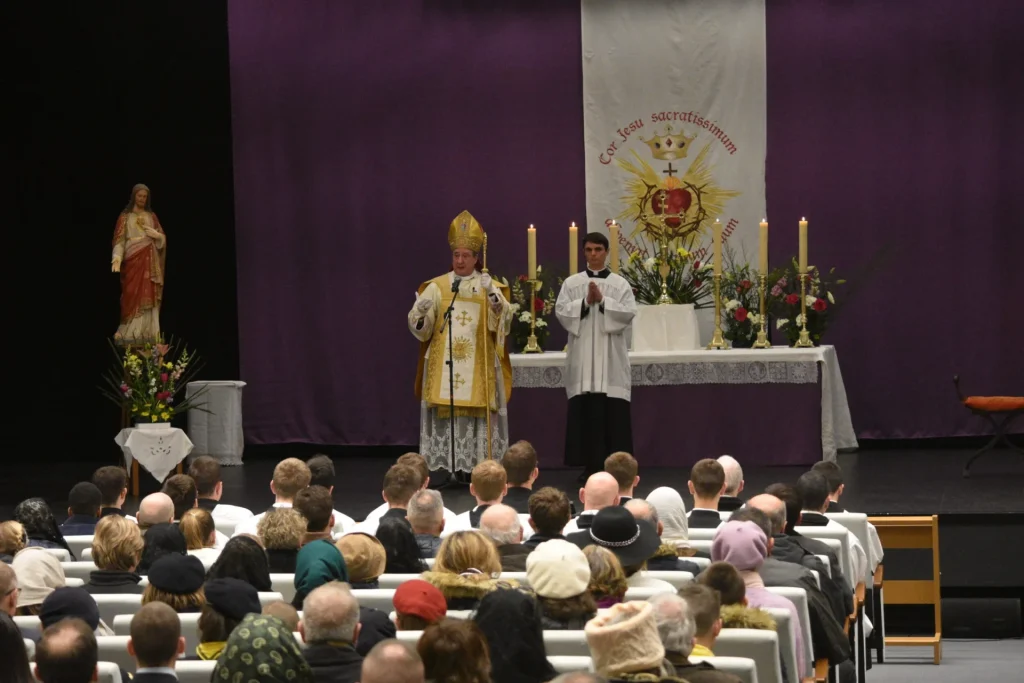 C’est pour célébrer cet anniversaire – ainsi que celui des 350 ans des apparitions à Sainte Marguerite-Marie – que plus de mille pèlerins se retrouvaient le 2 mars dernier dans la Cité du Sacré-Cœur. Dans son sermon, Mgr de Galarreta, qui célébrait la messe pontificale au faldistoire, rappelait le lien intime entre le Cœur de Jésus et sa royauté.