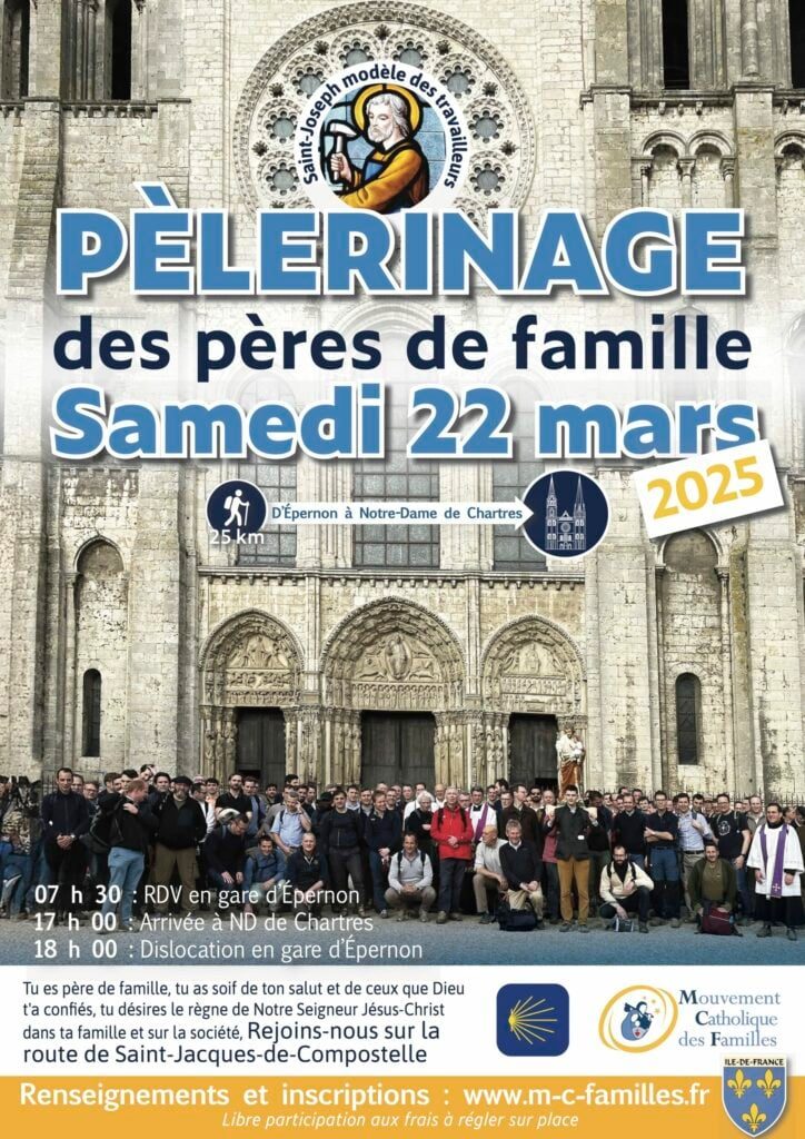 Le Mouvement Catholique des Familles vous invite à son Pèlerinage annuel vers Chartres pour les pères de famille le samedi 22 mars :