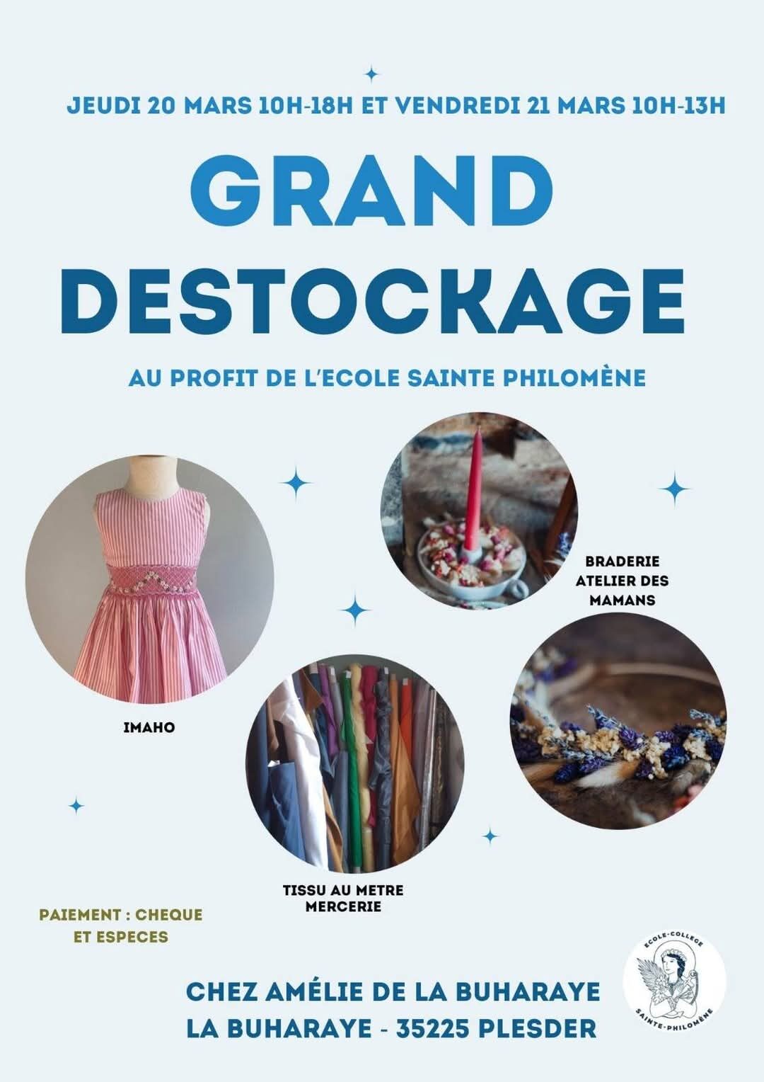 L’Ecole et le Collège vous invitent à leur vente « Grand Destockage » au bénéfice de l’école :