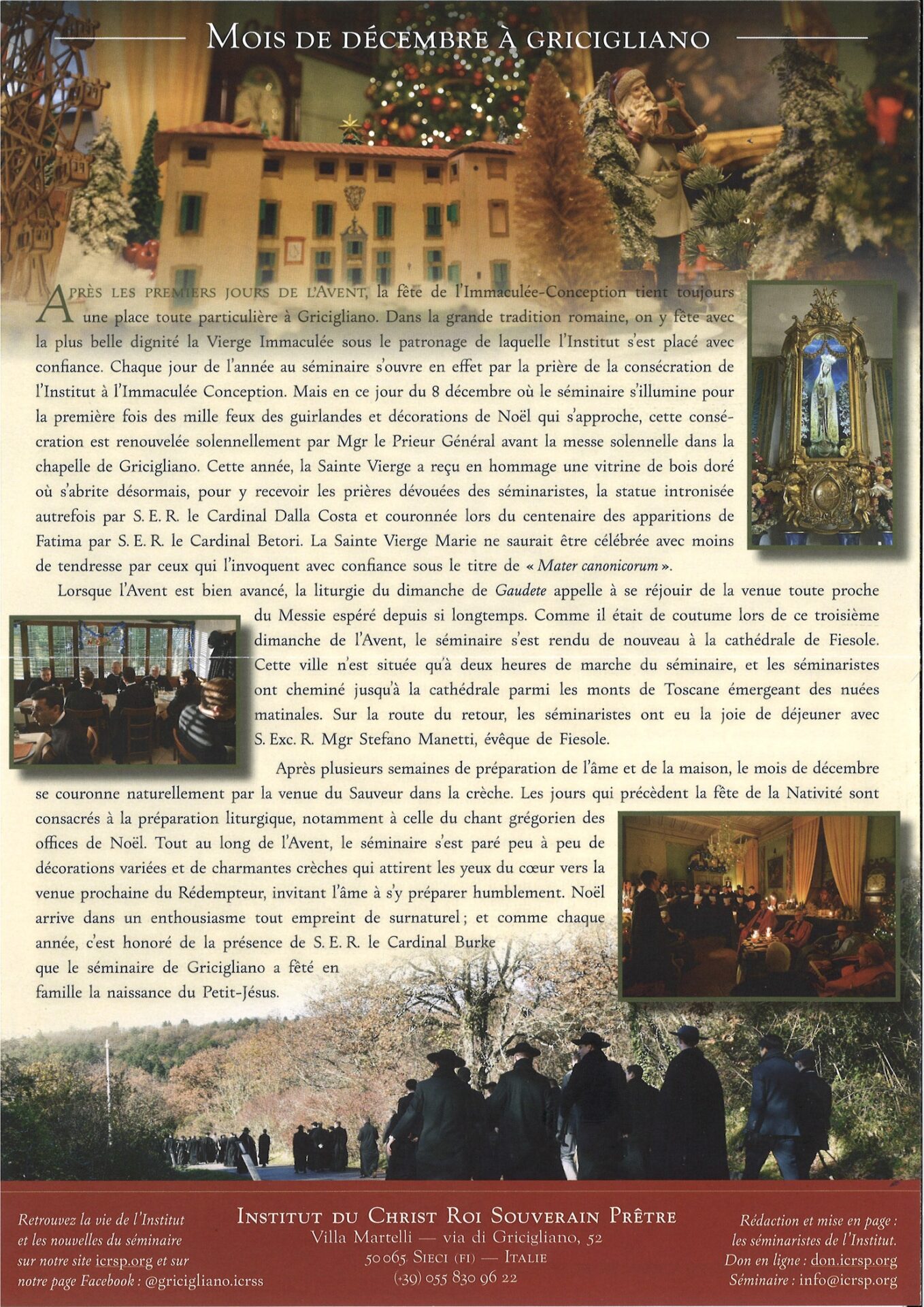 Le Séminaire Saint-Philippe Néri (Gricigliano), séminaire de l’Institut du Christ Roi Souverain Prêtre, publie sa lettre aux Amis et Bienfaiteurs en donnant quelques nouvelles des derniers mois au séminaire :