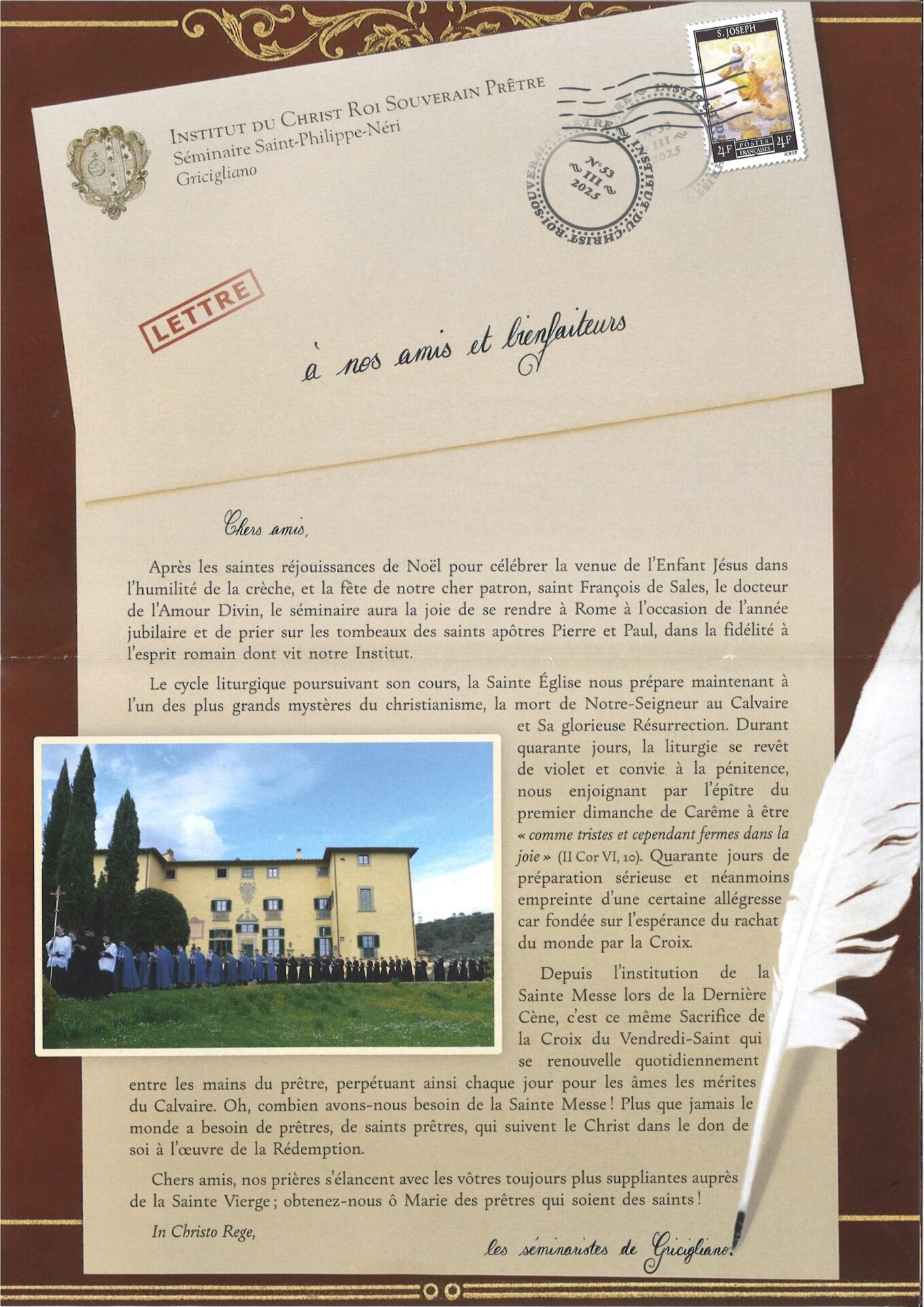 Dernière lettre aux Amis du Séminaire Saint-Philippe Néri (Gricigliano) (Mars 2025)