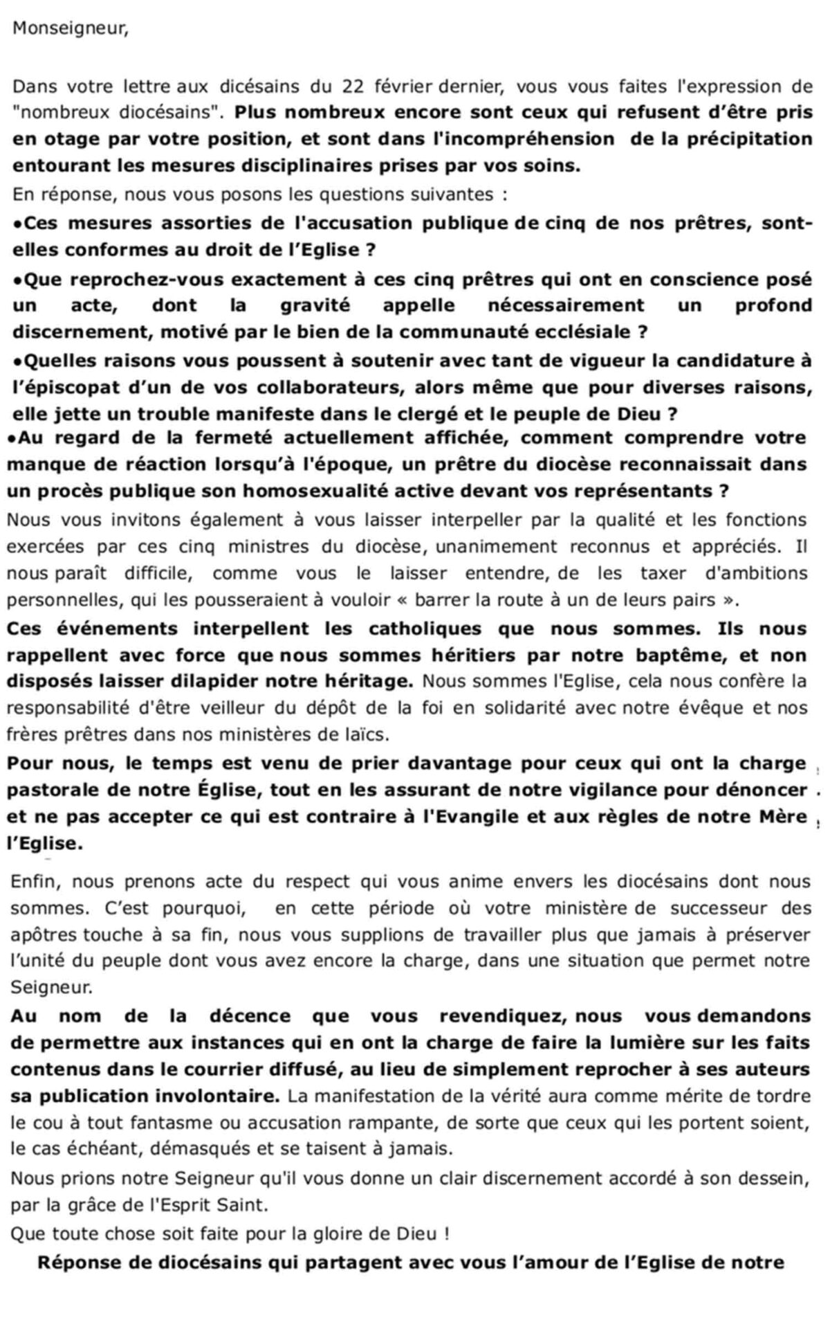 Cette lettre aurait du rester confidentielle, mais un des laïcs qui en était l’intermédiaire l’a transmise à la presse locale.