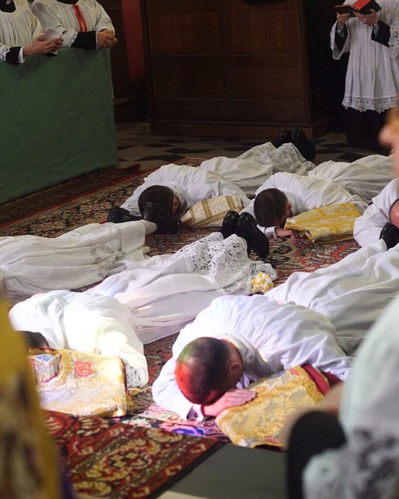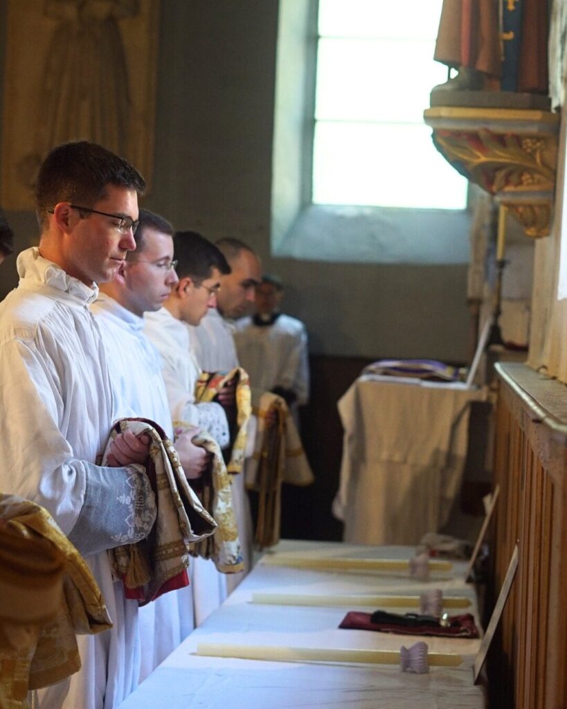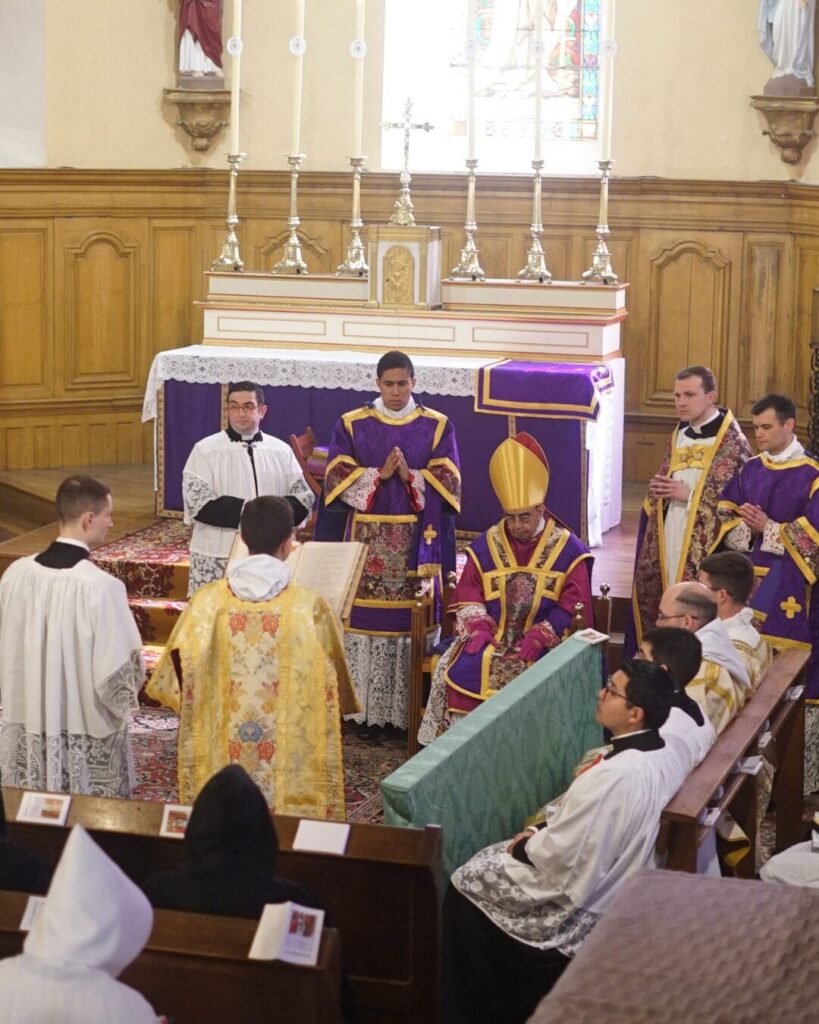 Ce samedi 5 avril, 14 séminaristes du Séminaire Saint Vincent de Paul de Courtalain (Institut du Bon Pasteur) ont reçu les ordres mineurs et 4 autres le sous-diaconat des mains de Monseigneur Alain Castet, évêque émérite de Luçon. Un frère de la Fraternité Saint Vincent Ferrier (Chémeré-le-Roi) a également été ordonné sous-diacre.