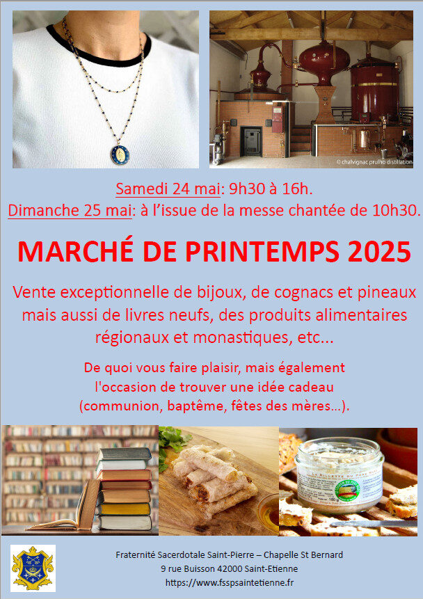 La Fraternité Saint-Pierre assure un ministère dans la région stéphanoise depuis sa fondation (à Saint-Etienne et dans le Forez (Pélussin puis Bessey), mais aussi plus récemment à Montbrison). A Saint-Etienne, elle est d’ailleurs propriétaire de la Chapelle Saint-Bernard pour laquelle elle doit réaliser de nombreux travaux.