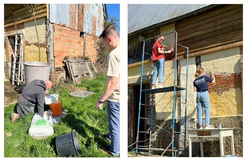 Pour finir, voici des nouvelles des travaux réalisés ou décidés. C’est désormais un ami voisin qui dirige les travaux, je l’en remercie chaleureusement, cela me soulage beaucoup. Une campagne de plantations a commencé à la fin de l’hiver, il faudra la poursuivre à l’automne. C’est d’autant plus nécessaire que nous n’avons plus accès à la forêt. Le Conseil d’administration réuni lors de la journée de récollection du 29 mars a donné son aval pour la poursuite des travaux de l’extension de la maison Saint-Joseph, au minimum pour le gros œuvre qui permettra de réunir l’ancien oratoire et le nouveau dortoir au reste de la maison. Il a aussi été décidé de réaliser un parking car tout l’hiver des voitures se sont embourbées. Le prochain travail urgent sera la construction d’un escalier extérieur : c’est une question de sécurité. Ces jours-ci, un groupe de jeunes a achevé le crépi de la bibliothèque (voir photos), commencé il y a deux ans. Merci à tous ces maçons amateurs. Enfin des amis qui malheureusement quittent la Normandie offrent une table de communion, ce sera plus beau et plus digne.
