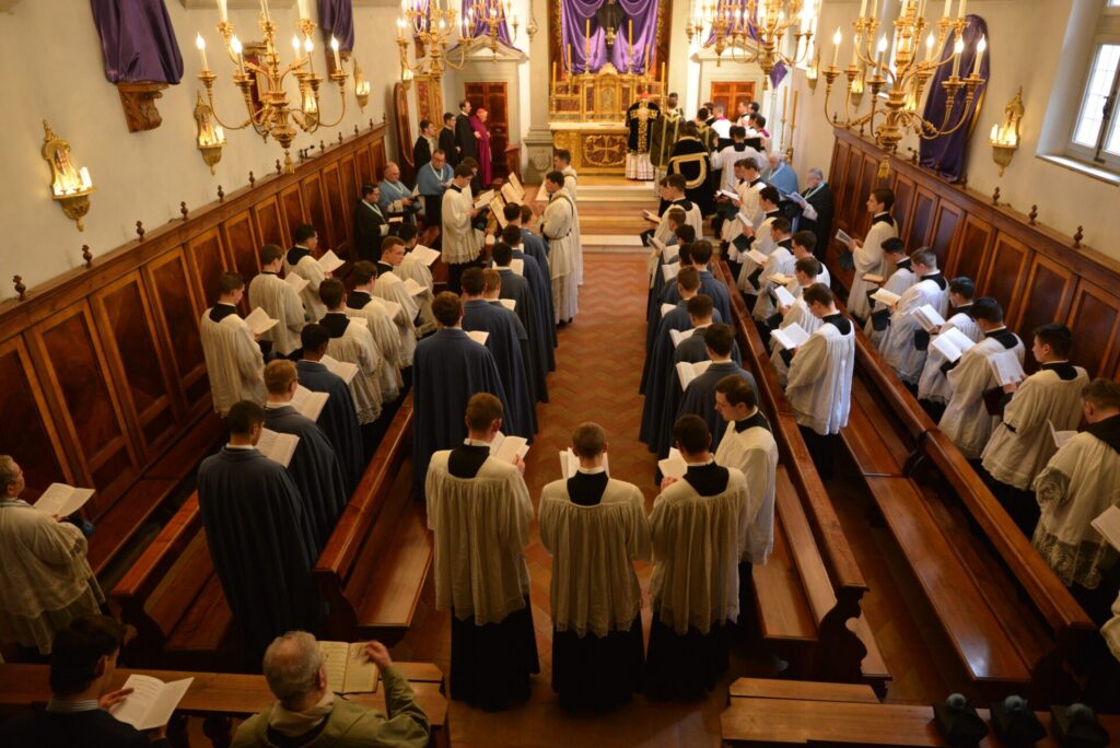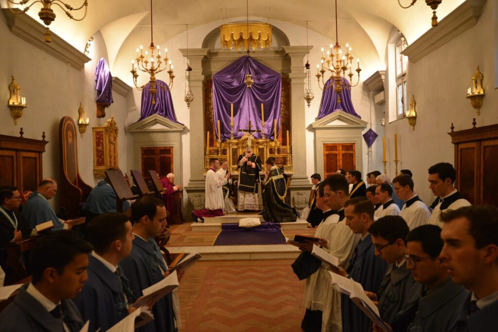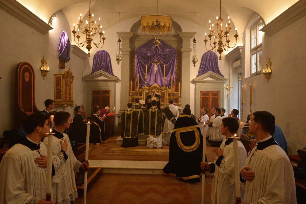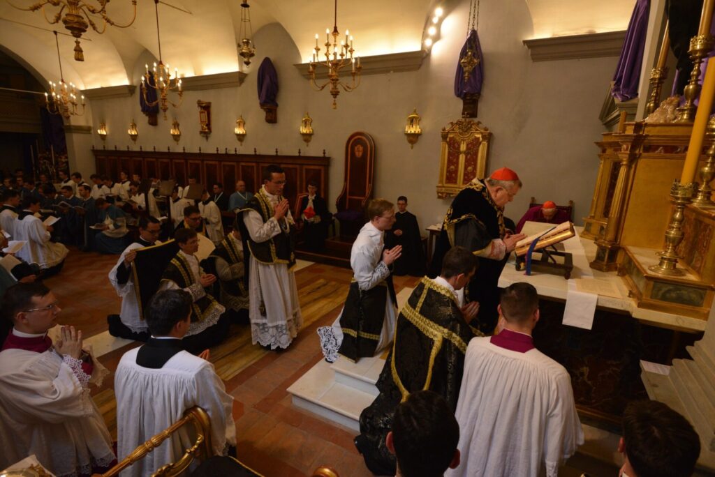 Au Séminaire Saint-Philippe Néri (Gricigliano), séminaire de l’Institut du Christ Roi Souverain Prêtre, le cardinal Burke a célébré une messe pontificale des Présanctifiés pour le vendredi Saint (Semaine Sainte d’avant le réforme de Pie XII).