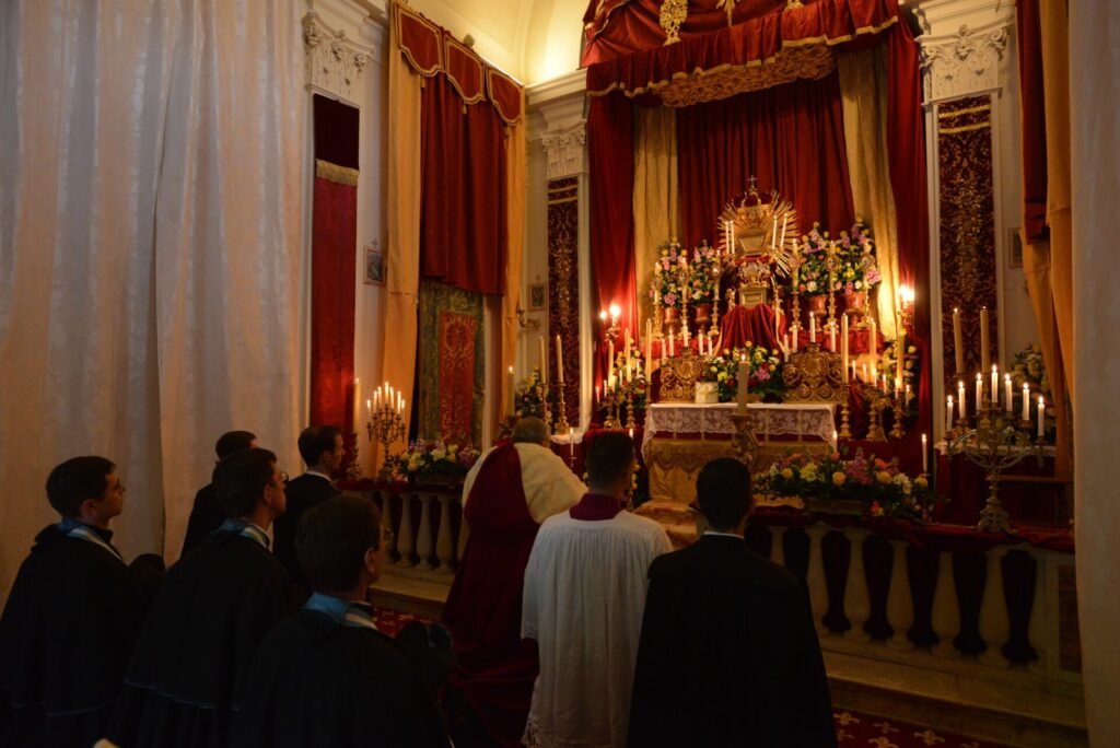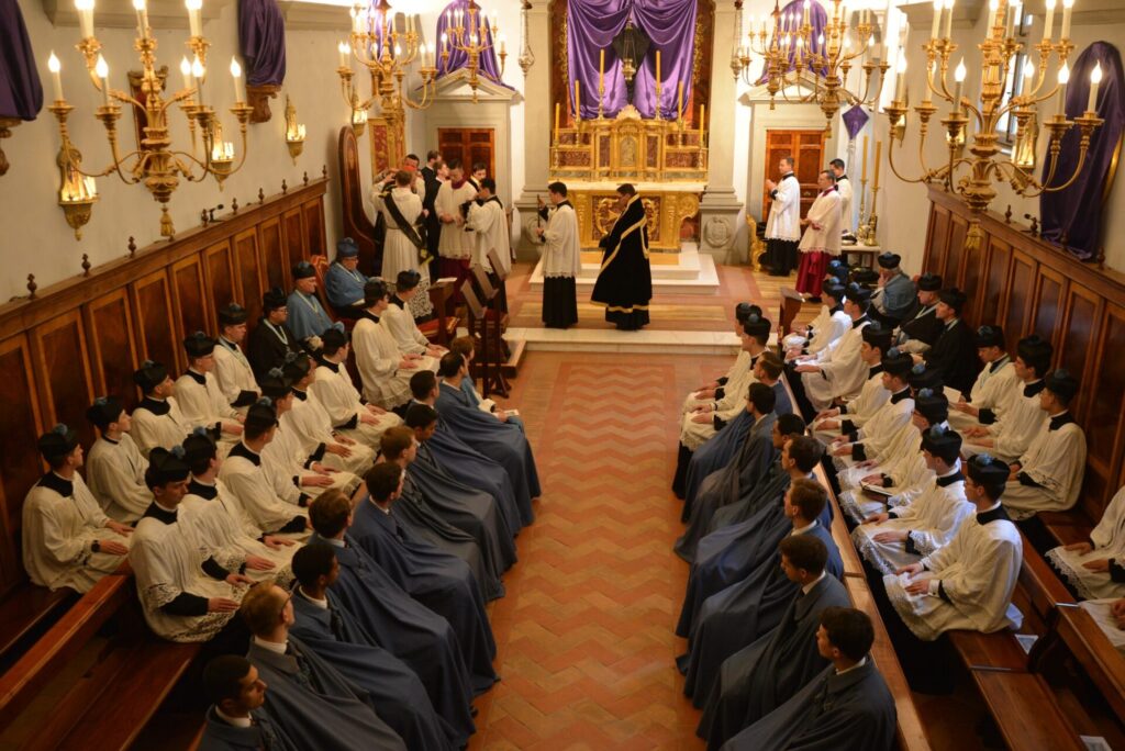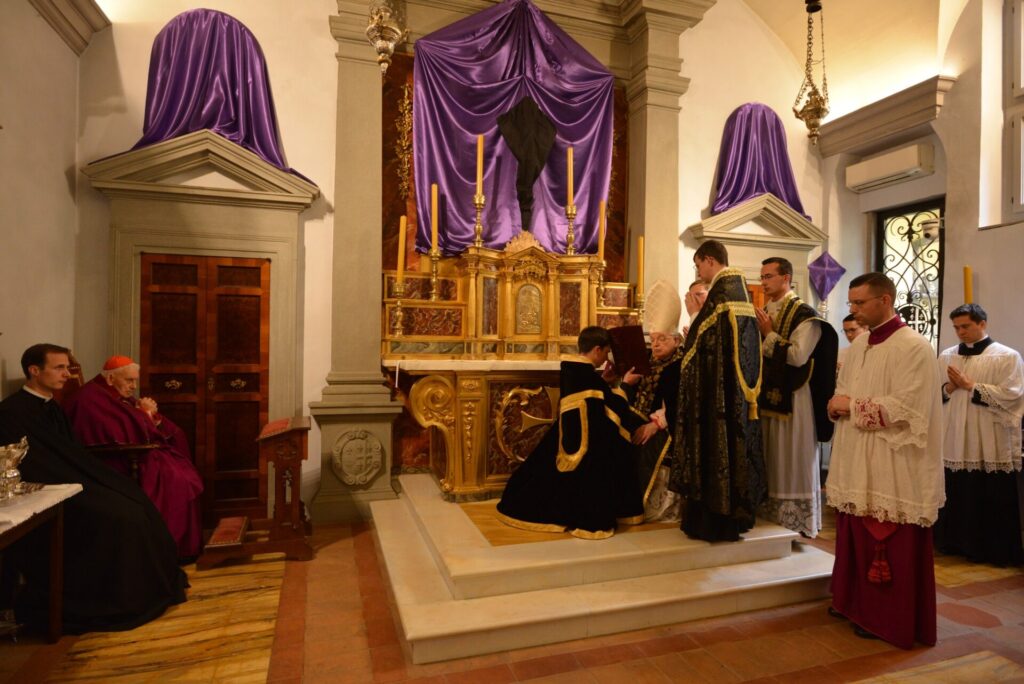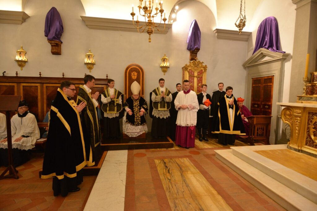 Messe Pontificale des Présanctifiés célébrée par S.E.R. le cardinal Burke en présence de S.E.R. le cardinal Simoni dans la chapelle de l’Immaculée Conception à Gricigliano.